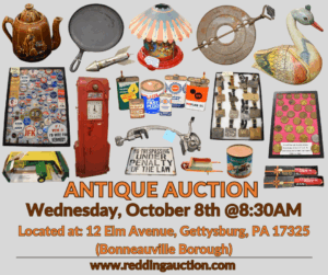 Redding Auction Service, Inc. is a NO BUYER'S PREMIUM and NO RESERVE auction facility. They offer live-in-house bidding, phone and absentee bidding, and when deemed necessary, online bidding through AuctionZip and Invaluable. They take great pride in their cataloging and picturing, offer preview times prior to each auction, and will provide condition reports on any item to answer any additional questions you may have. Their goal is to ensure you are as comfortable and confident as possible when bidding. They have an in-house shipping department that is happy to assist if you need those services.
