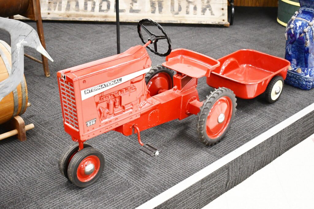Antiques and Collectibles: (14) Pinball Machine Glass Backs, (14) Various Ornately Carved Wooden Canes, (85) Lots of Order of Red Man Collectibles, Large Amount of Stamps and Stamp Albums, Large Amount of Petroleum Related Advertising Tins, Large Amount of Cast Book Ends, Large Amount of Cast Doorstops, Cast Banks, Pottery Crocks and Jugs, Pottery Vases, Pottery Planters, Railroad and Other Lanterns, International Farmall Model 856 Pedal Tractor w/Wagon, Metal Armor Suit, “The Micrometer” Scale, Vintage Telescope on Tripod, Vintage Wooden Sled, Michael Trostle Farm Civil War Hospital Sign, N.H. Baughmanmabble Works Wooden Advertising Sign, The Bentwood Churn, Wooden Nail Kegs, Wooden Buckets, Great Seneca Creek Bridge and Northwest Branch Bridge Signs, Columbia Grafonola Record Player, Vintage Tools, Foster Bro’s No. 13 Meat Cleaver, Coats and Clarks Sewing Thread Tabletop Display, John Deere Quality Farm Implements Advertising Sign, Advertising Tins, Harbisons Dairies Advertising Sign, Tin Shore Bird Decoy, Native American Plain Indian Sacred Pipes Tabaco Bag w/Geometric Bead Work, Musical Instruments, Cast Iron Match Case Holders, Tinware, Woodware, Vintage Cameras, Folding Rules, Rev War Era 18th Century Officers Traveling Oak Cased Liquor Set w/6 Gilt Enhanced Bottles, 2 Glasses, and a Dovetailed Tray, Hand Forged Bolo, Vintage Porcelain Dolls, Powder Horns, German Schoenhut Home Builder Toy Wooden Houses, Vintage Scales, Advertising Lighters, Miniature Cast Stove, Woven Baskets, Coffee Mill, Old Photographs, Civil War Relics and Cartridges, Daguerreotype, Binoculars, Advertising Pinbacks, Blakeford Farms Young Breeders Angus Breeders Trophy, Vintage Masks, Marbles, Magic Lantern Slides in Slide Groove Box, Old Pipes, Copper and Brass Items, Ornate Wooden Mantle and Wall-Hanging Clocks, Swords, Firearms, Dug Artifacts, Vintage Books, Large Amount of Framed Prints and Pictures, and Other