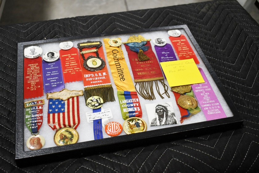 Sporting and Militaria: Animal Trap, Leapers Accu Shot Scope, Vintage Hunting Articles, Wooden Decoys, Fishing Reel, Large Amount of Folding, Pen, and Sheath Knives, Military and Order of Red Man Ribbons, Patches, and Badges, Nazi Ryker Case Display, Vintage Military Photographs, and Other