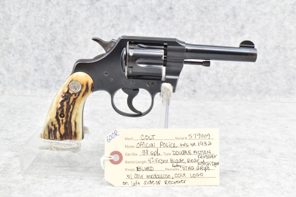 600R. Colt – Mod. Official Police – 38 Spl. Cal. Double Action Revolver – w/4” Barrel w/Front Blade & Rear...