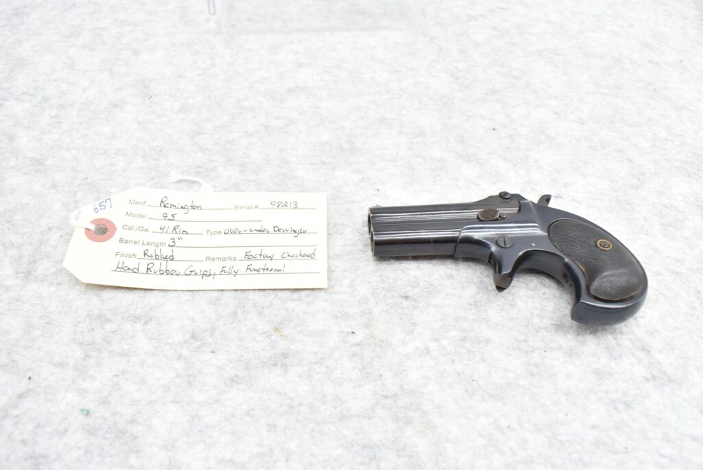 657. Remington – Mod. 95 – 41 Rim Cal. Over/Under Derringer – w/3” Barrel – Re-Blued Finish – w/Factory Checkered...