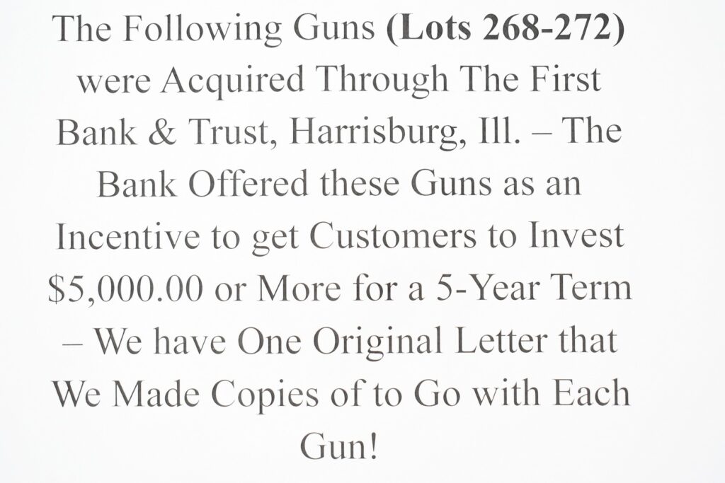 The Following Lots 268-272 Were Acquired Through the “First Bank & Trust, Harrisburg, IL”. The Bank Offered These Guns as...