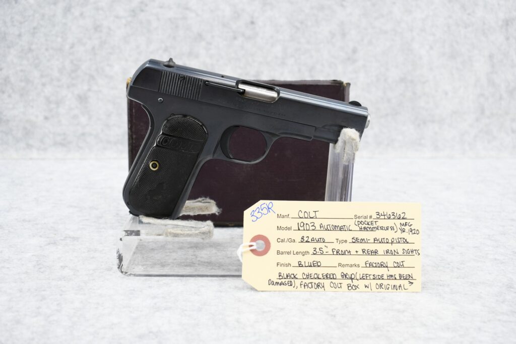 335R. Colt – Mod. 1903 Automatic (Pocket Hammerless) – 32 Auto Cal. Semi-Auto Pistol – w/3.5” Barrel w/Front & Rear...