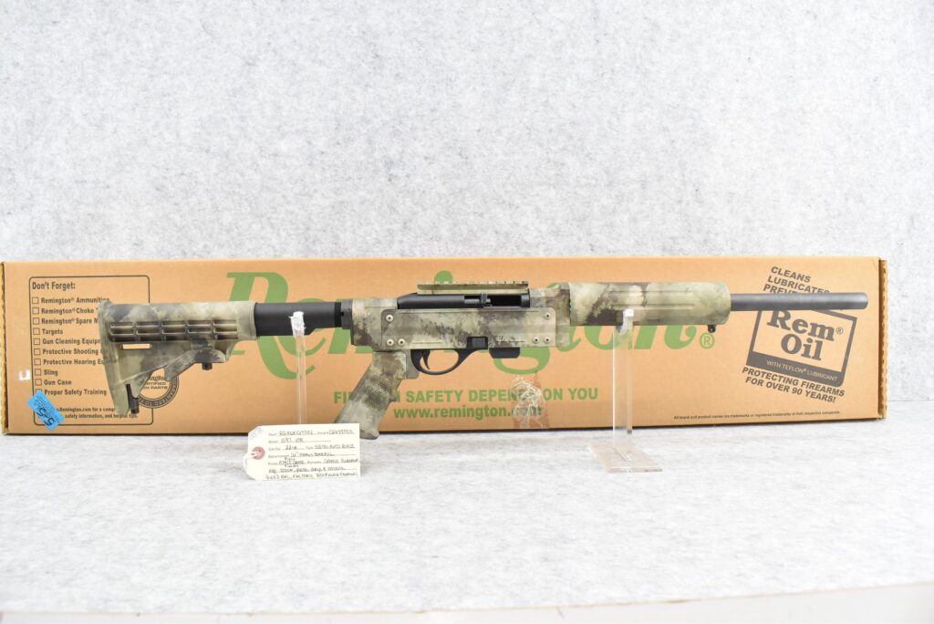 357R. Remington – Mod. 597 VTR – 22LR Cal. Semi-Auto Rifle – w/16” Heavy Barrel – Full ATACS Camo Coverage...