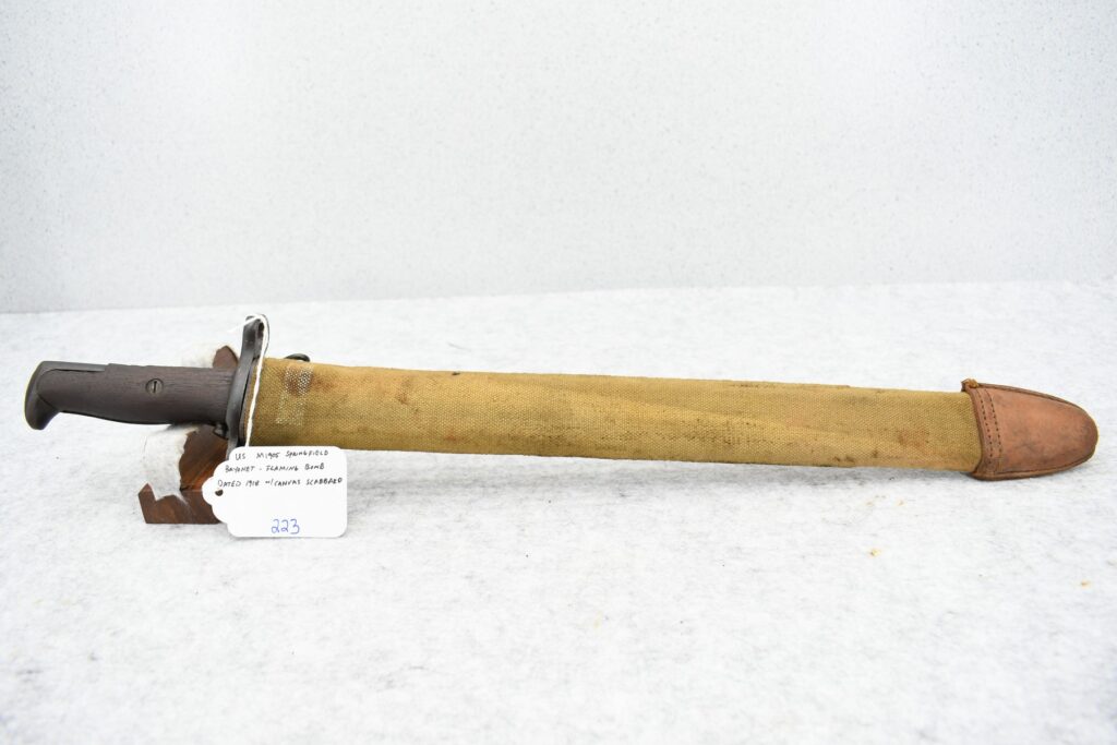 223.        U.S. Springfield M1905 Bayonet w/Canvas Scabbard – Dated 1918