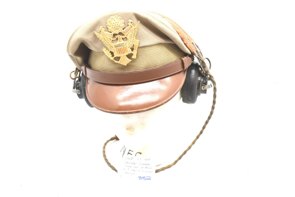 382.        WWII U.S. AAF “Crusher” Summer Visor Cap By Knox w/ID Card and Aviation Headset