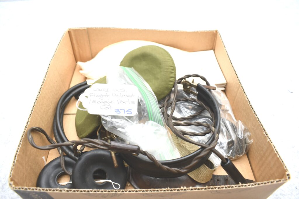 375.        WWII U.S. Flight Helmet and Goggle Parts Lot