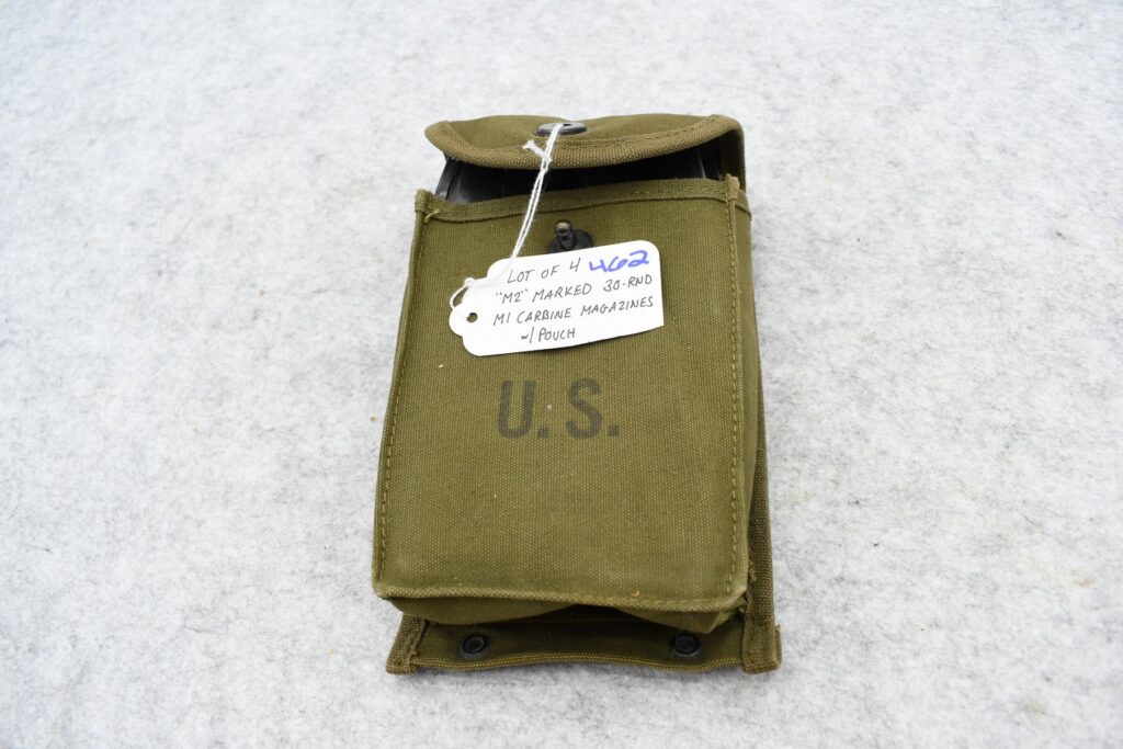 462.        Lot of (4) “M2” Marked 30-Round M1 Carbine Magazines w/Pouch