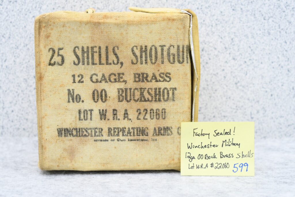 599. Factory Sealed Winchester Military 12ga. 00-Buck Brass Shells – Lot W.R.A. 22060