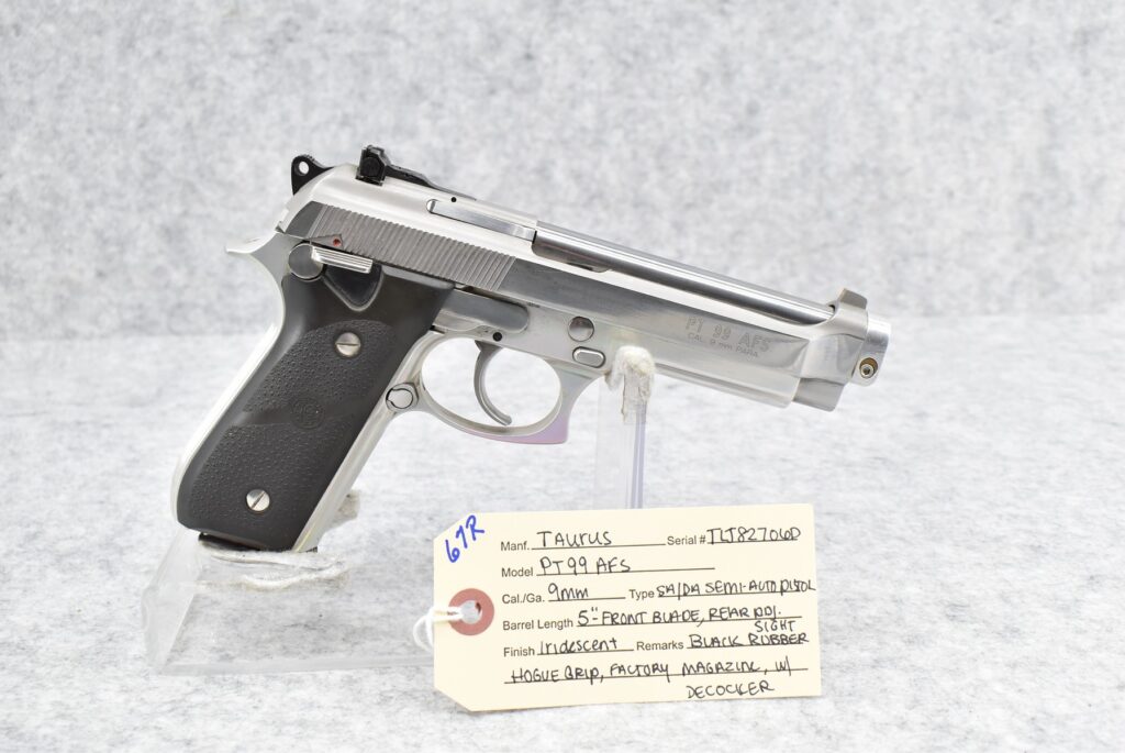 67R. Taurus – Mod. PT99 AFS – 9mm Cal. Semi-Auto Pistol – w/5” Barrel w/Front Blade & Rear Adj. Sights...
