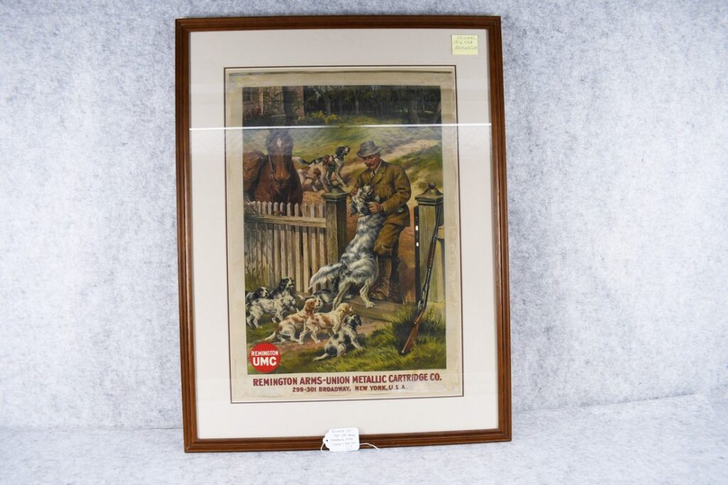 163.     Remington-UMC – 1900’s Era Framed Advertising Poster w/Hunter & Bird Dogs