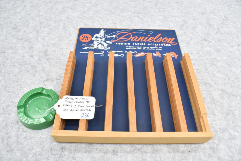 236. Danielson Fishing Tackle Countertop Display & Penn Fishing Reel Advertising Ashtray