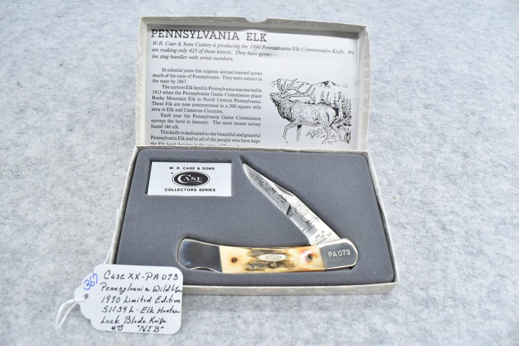 367.     Case XX – #51149L #PA073 PA Wildlife 1990 Limited Edition Elk Hunter Lock Blade Knife – NIB