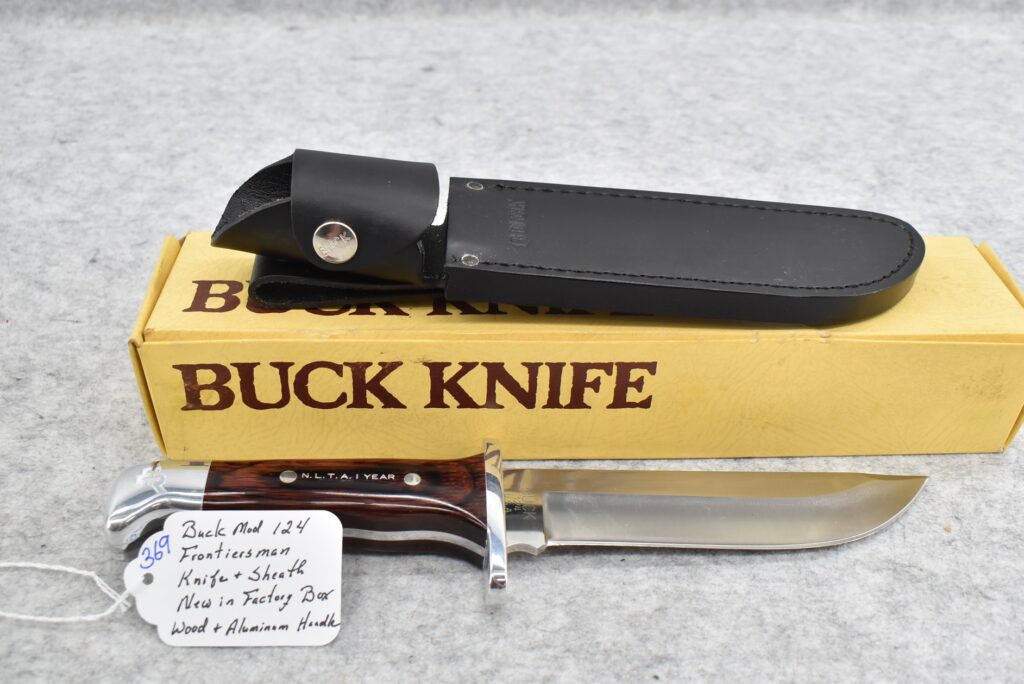 369.     Buck – M-124 Frontiersman Wood & Aluminum Handle Knife – w/Sheath – New in Factory Box