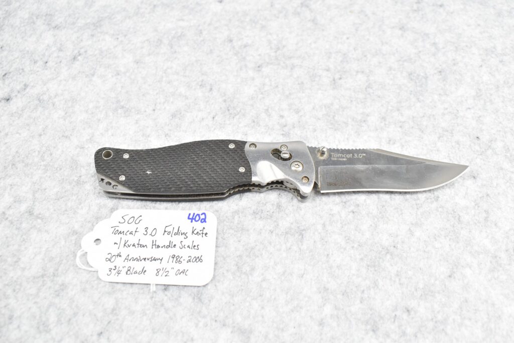 402.     SOG – Tomcat 3.0 20th Anniversary 1986-200-6 Folding Knife – w/3 ¾” Blade – 8 ½” Overall Length –...