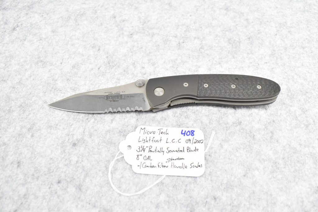 408.     Micro-Tech – Lightfoot L.C.C. 09/2002 Folding Knife – w/3 ¼” Partially Serrated Blade – 8” Overall Length – w/Custom...