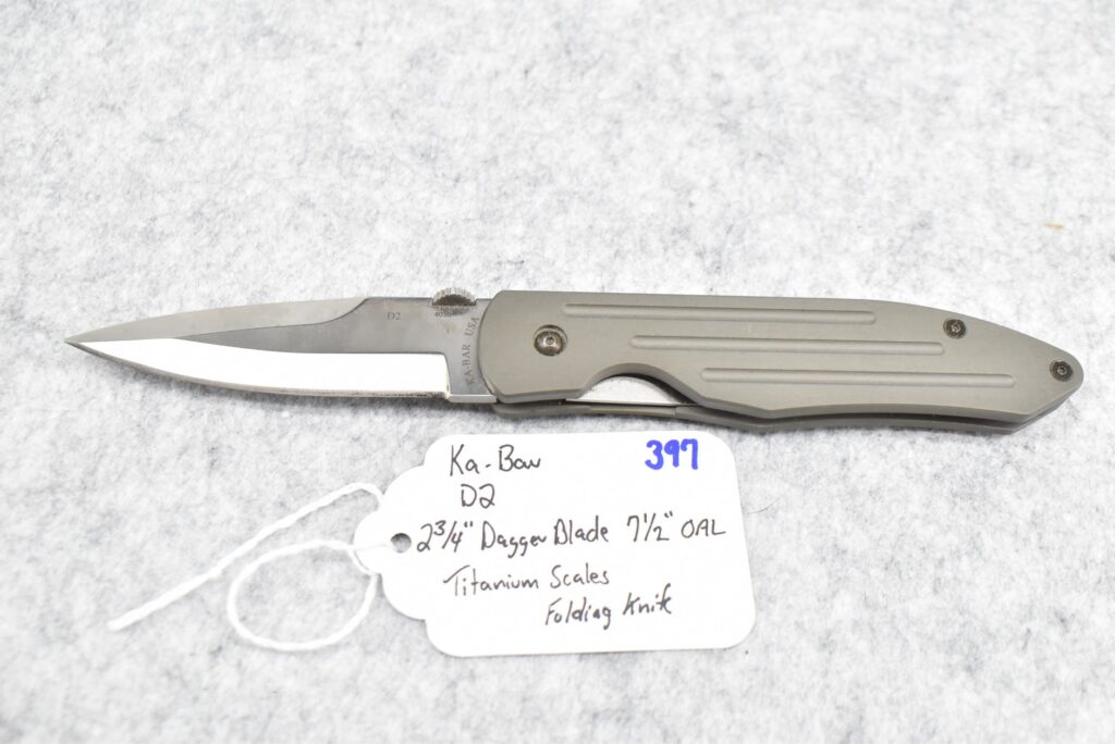 397.     Ka-Bar – D2 Folding Knife – w/2 ¾” Dagger Blade – 7 ½” Overall Length – w/Titanium Scales