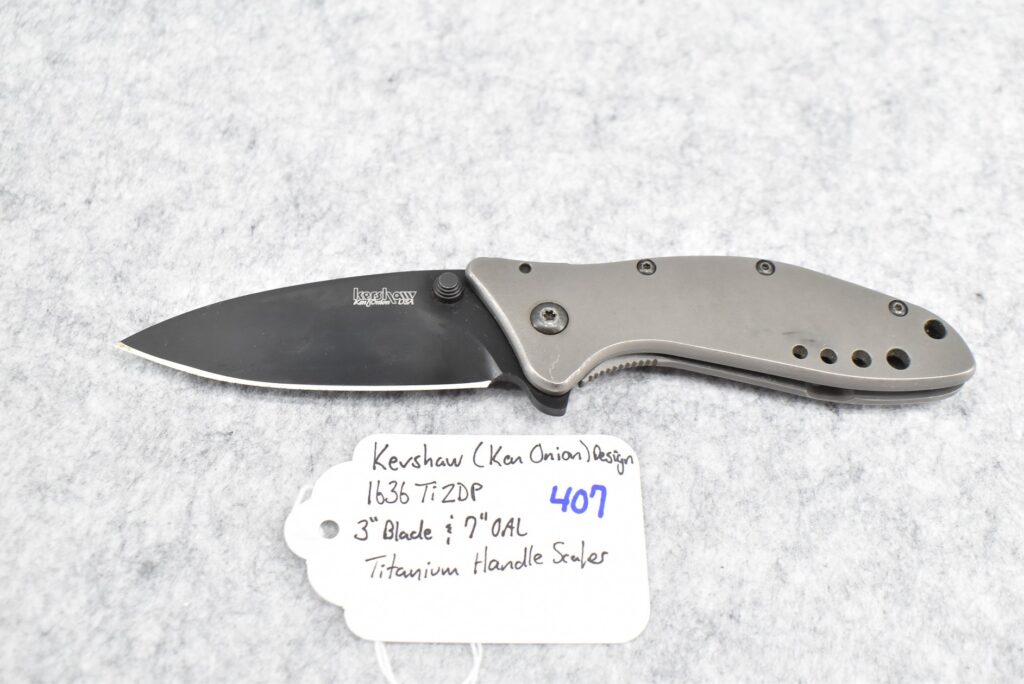 407.     Kershaw – Ken Onion Design #1636TiZDP Folding Knife – w/3” Blade – 7” Overall Length – w/Titanium Handle Scales