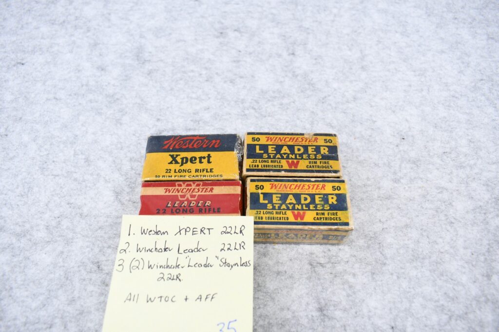 35.       Lot of 4 Boxes Including:  1) Western Xpert 22LR. 2) Winchester Leader 22LR. 3) Two Winchester “Leader” Staynless 22LR
