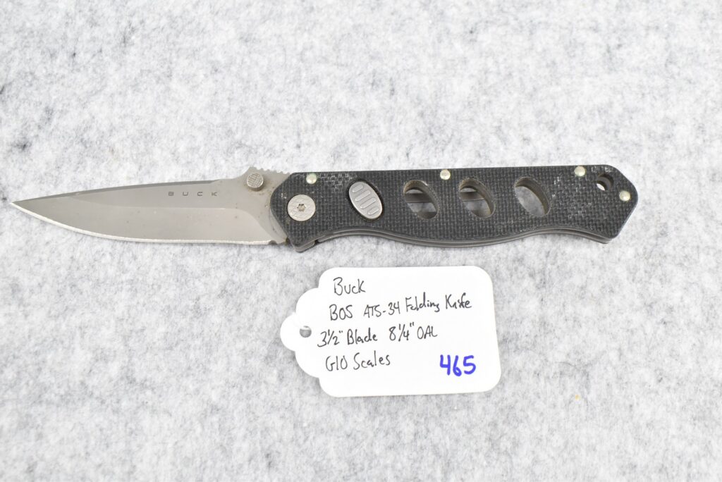 465. Buck – BOS ATS-34 Folding Knife – w/3 ½” Blade – 8 ¼” Overall Length – w/G10 Scales