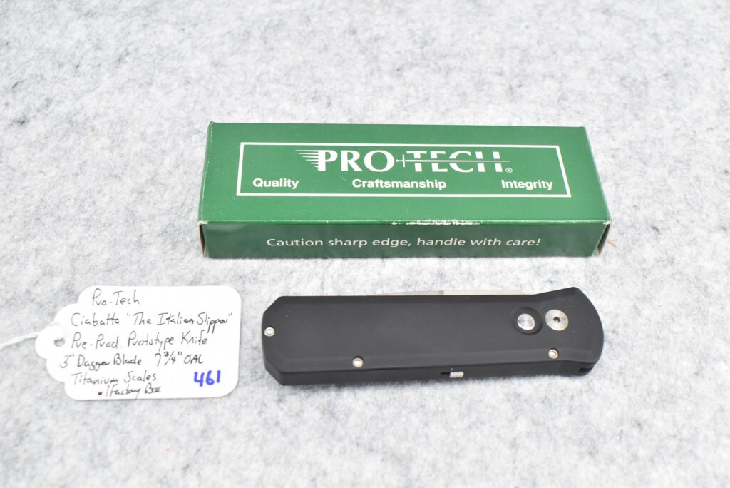 461. Pro-Tech – Ciabatta “The Italian Slipper” Pre-Production Prototype Knife – w/3” Dagger Blade – 7 ¾” Overall Length – w/Titanium Scales – w/Factory Box