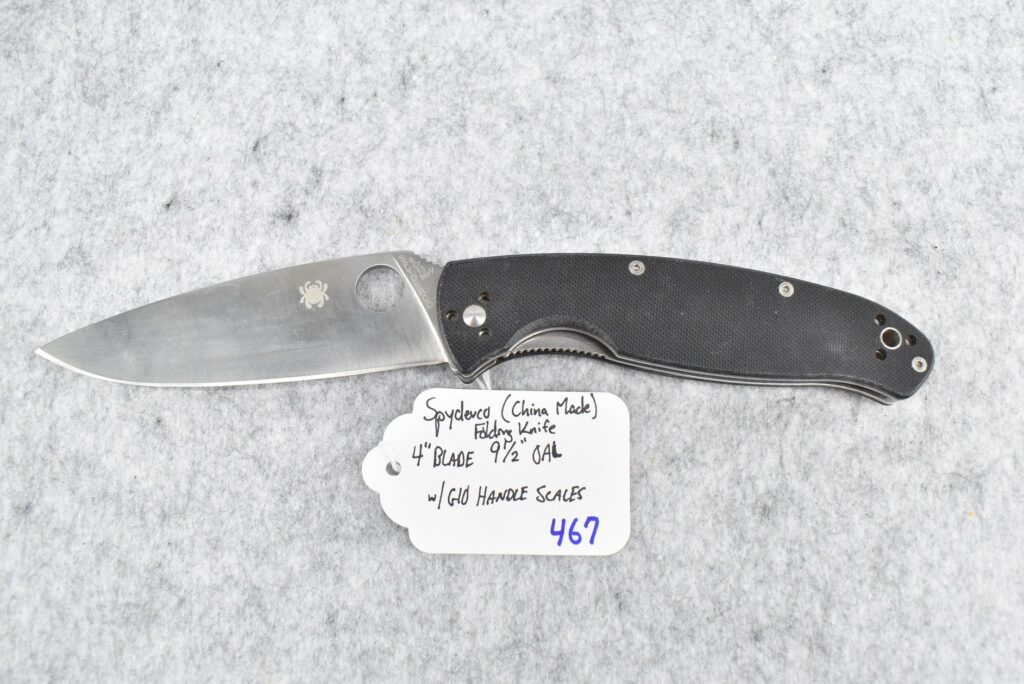 467. Spyderco (China Made) – Folding Knife – w/4” Blade – 9 ½” Overall Length – w/G10 Handle Scales