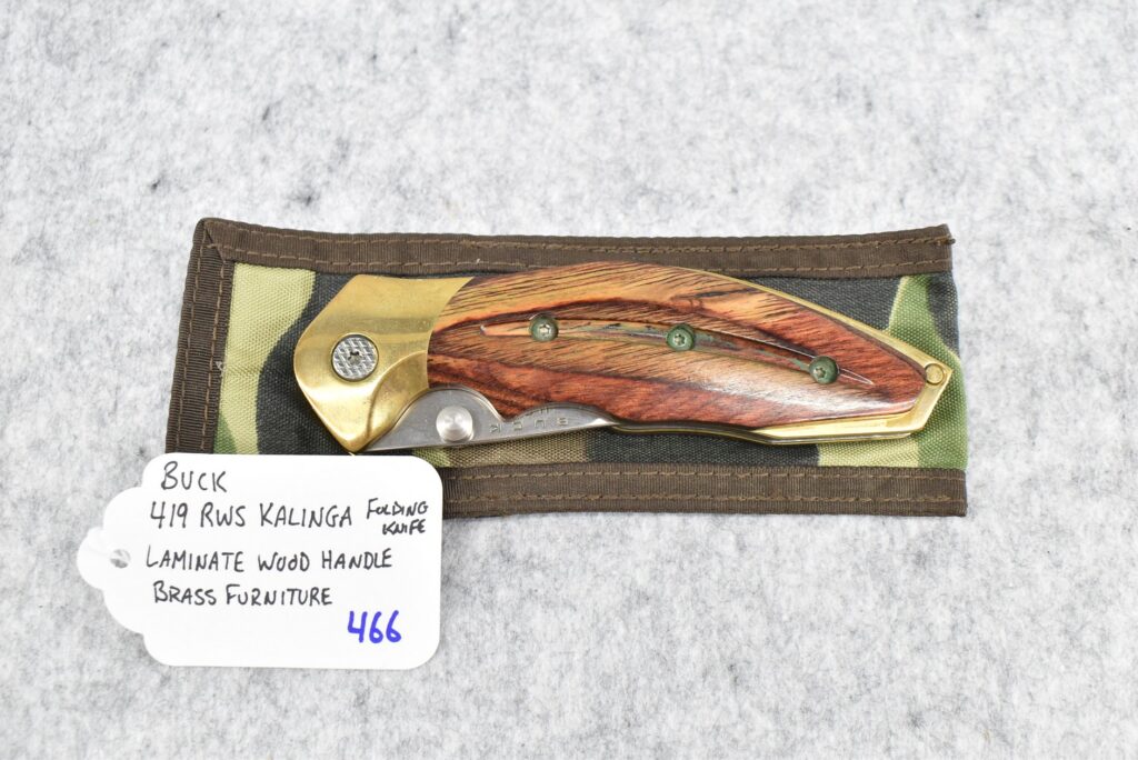 466.     Buck – #419 RWS Kalinga Folding Knife – w/Laminate Wood Handle – w/Brass Furniture