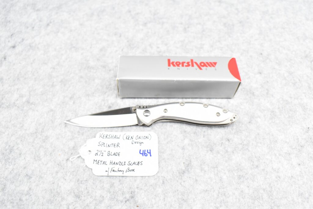 464.     Kershaw – (Ken Onion Design) Splinter Folding Knife – w/2 ½” Blade – w/Metal Handle Scales – w/Factory Box