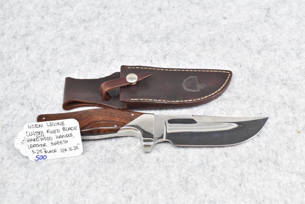 500. Norm Levine – Custom Fixed Blade Knife – w/5.25” Blade – 10.25” Overall Length – w/Hardwood Handle – w/Leather Sheath