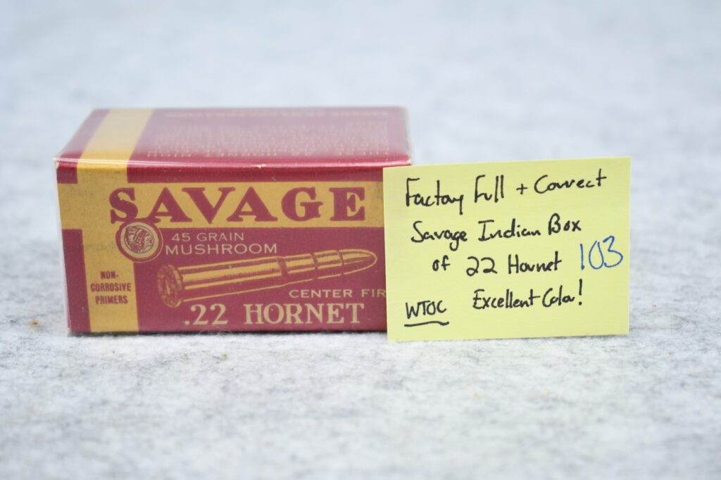 103.     Savage – Indian Box of 22 Hornet – Excellent Color! – FF & Correct – WTOC