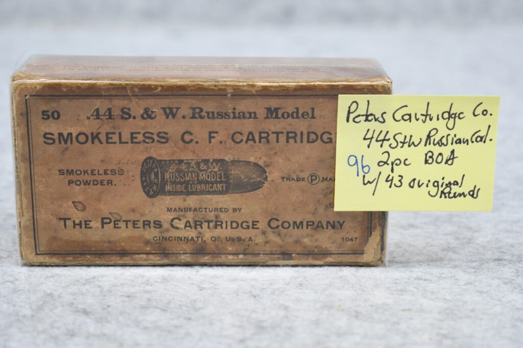 96. Peters Cartridge Co. – 44 S&W Russian Cal. 2pc. BOA w/43 Original Rounds
