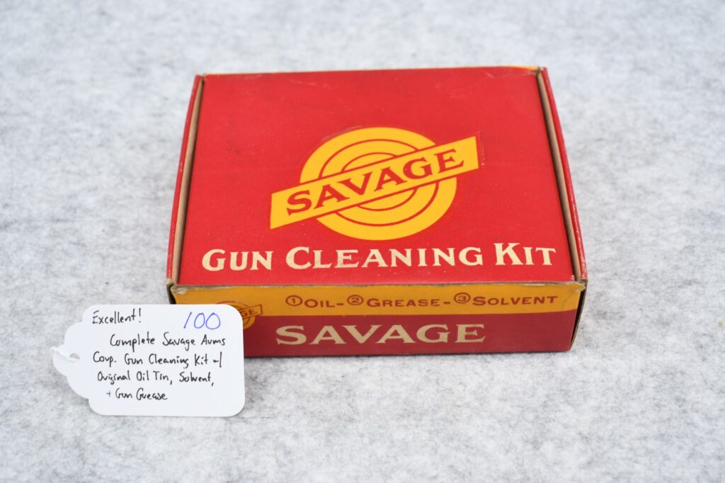 100. Excellent! Complete Savage Arms Corp. Gun Cleaning Kit w/Original Oil Tin, Solvent & Gun Grease