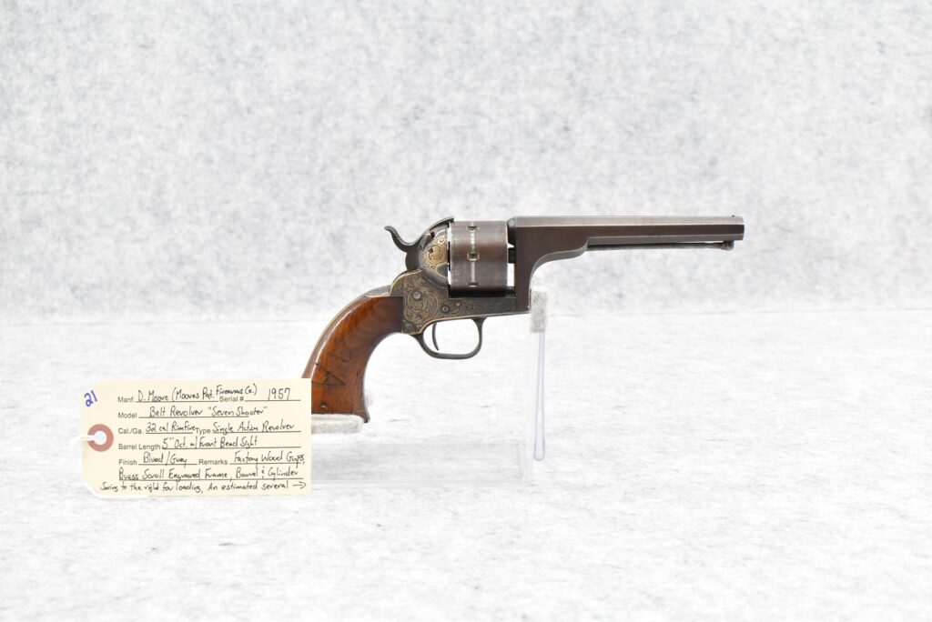 21. D. Moore (Moores Pat. Firearms Co.) – Mod. Belt Revolver “Seven Shooter” – 32 Rimfire Cal. Single Action Revolver...