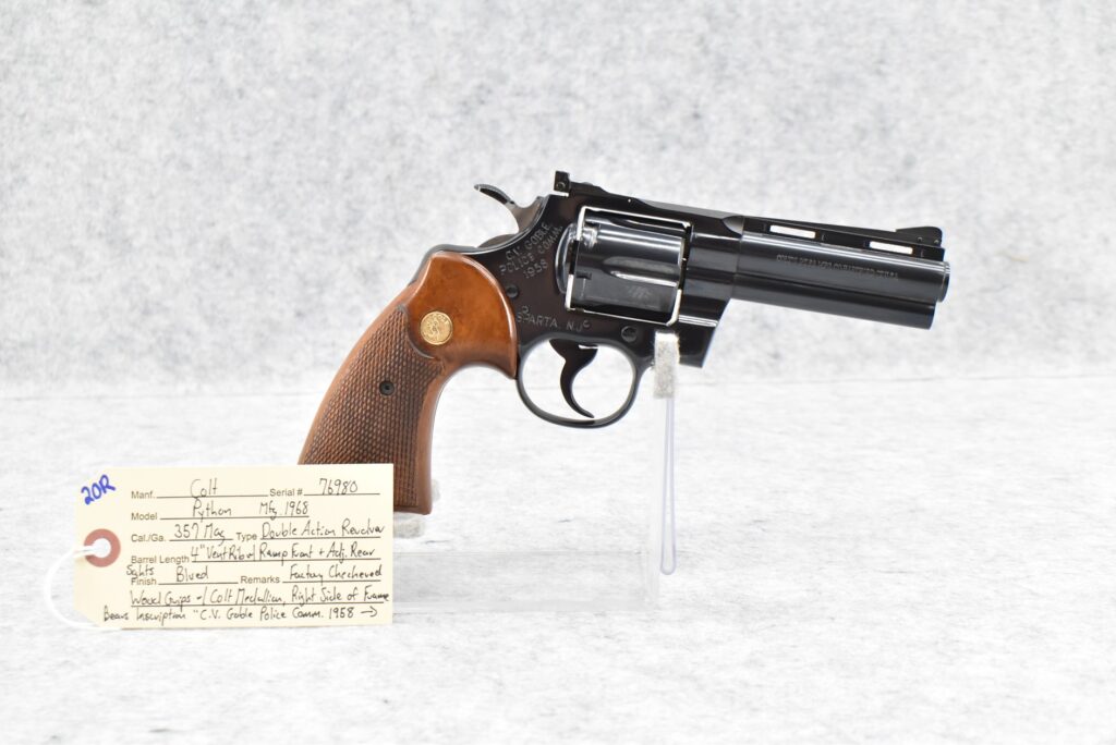 20R. Colt – Mod. Python – 357 Mag. Cal. Double Action Revolver – w/4” Vent-Rib Barrel w/Ramp Front & Adj....