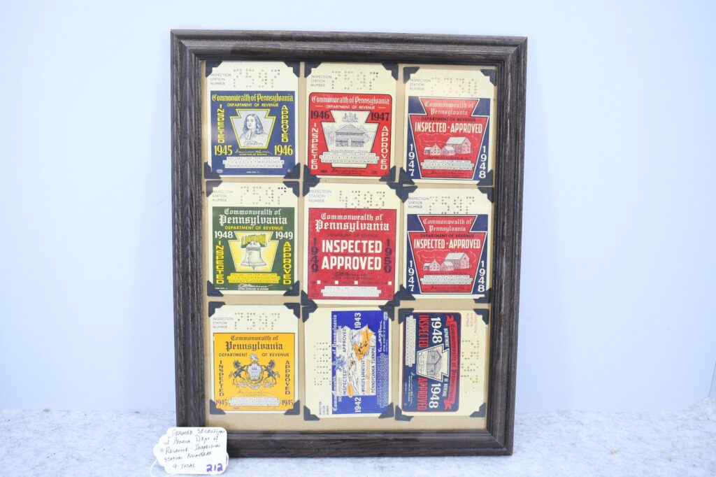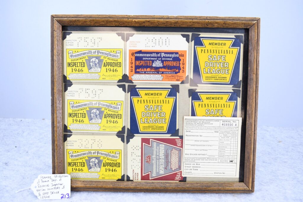 213. Unusual Framed Selection of Penna. Dept. of Revenue Inspection Station Numbers and Member Pennsylvania Safe Driver League – Eight...