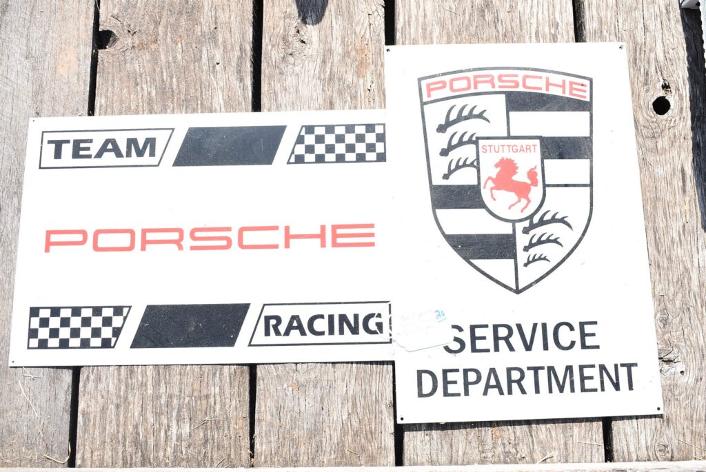 20.     Pair of 12”x18” Metal Porsche Shop Signs – Team Porsche Service Department
