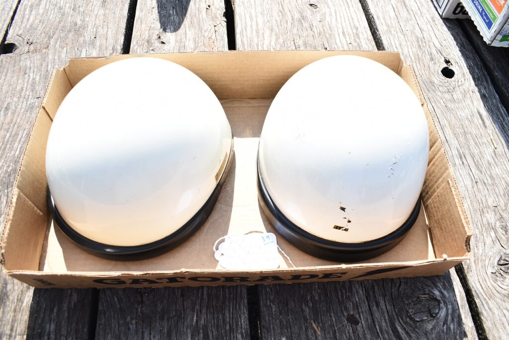 19.     Pair of British Racing Helmets – Original Romer-Helm