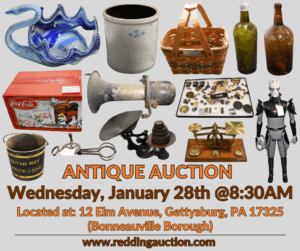 Auction Preview: Tuesday January 27th 12:00PM-6:00PM Doors Open: Sale Day @ 7:00AM Auction Schedule: 8:30AM – Front Smalls Begin 10:30AM...