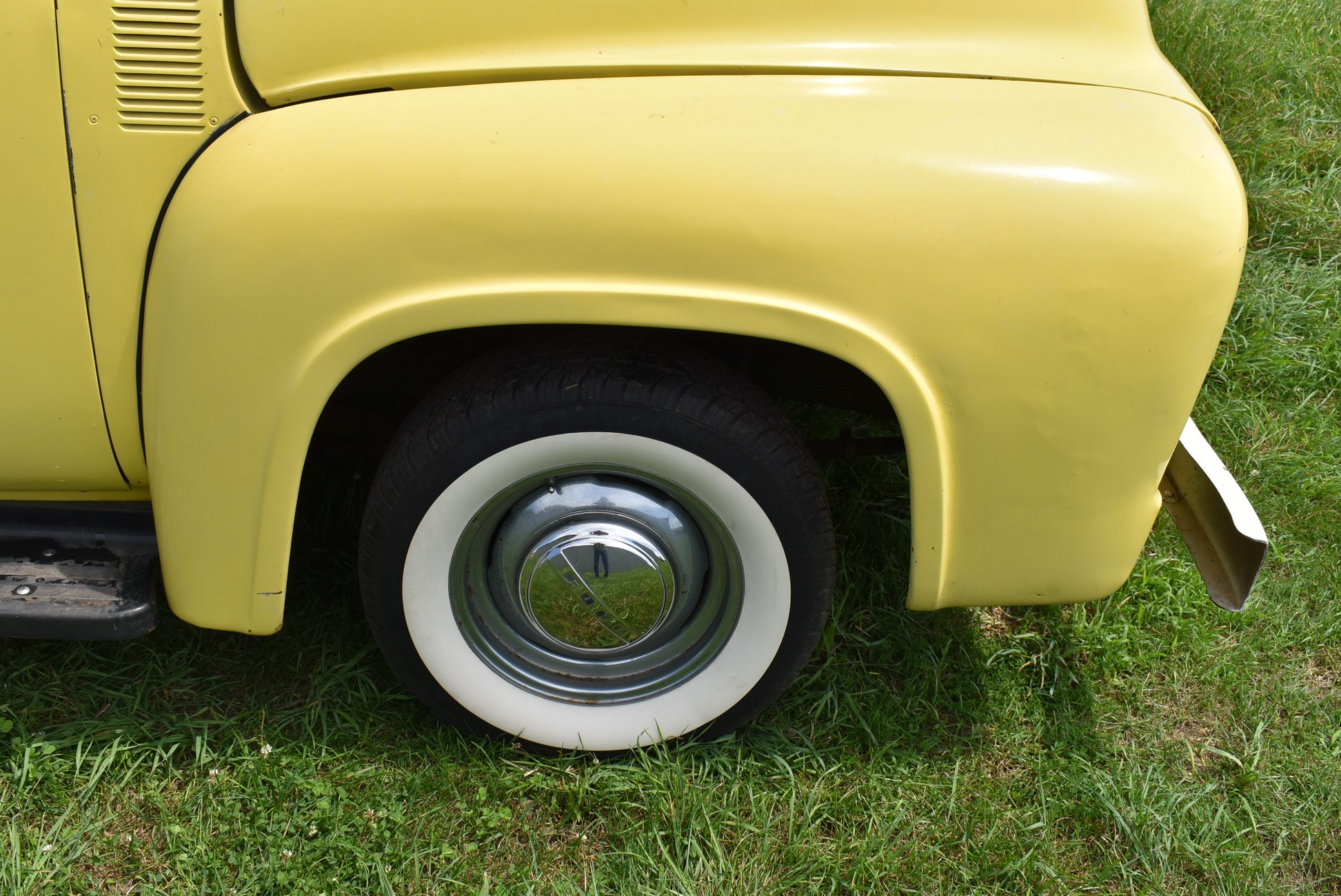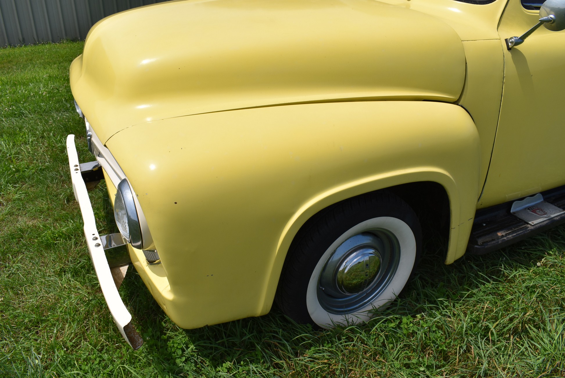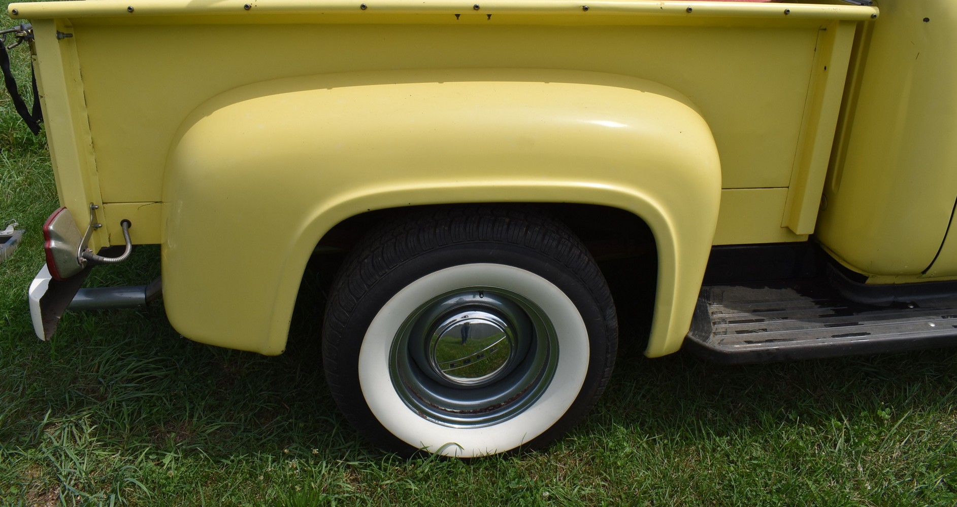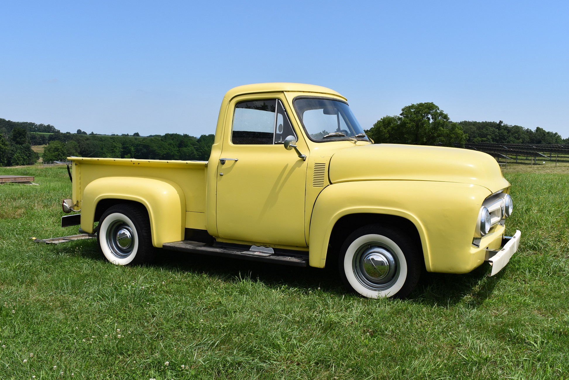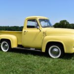 1. 1954 Ford F100 Truck – 351ci. Windsor V8 Engine w/2bbl Carburetor – Mileage Unknown – C4 Auto Transmission – Lokar Shifter – Ford 9” Rear End – Dolphin Digital/Analog Gauges – Dual Exhaust – Fat White Wall Tires – 1955 Taillights – Yellow Exterior – Vin#: F10V4H56048