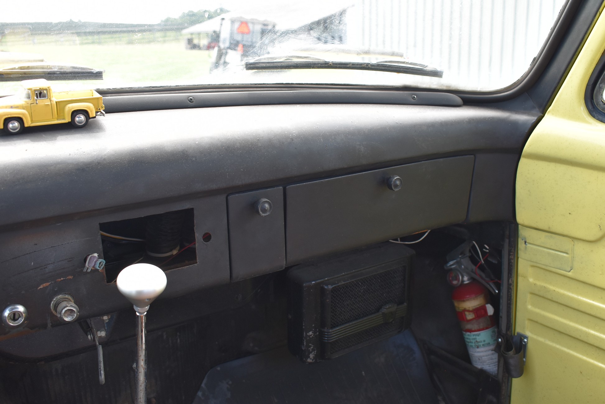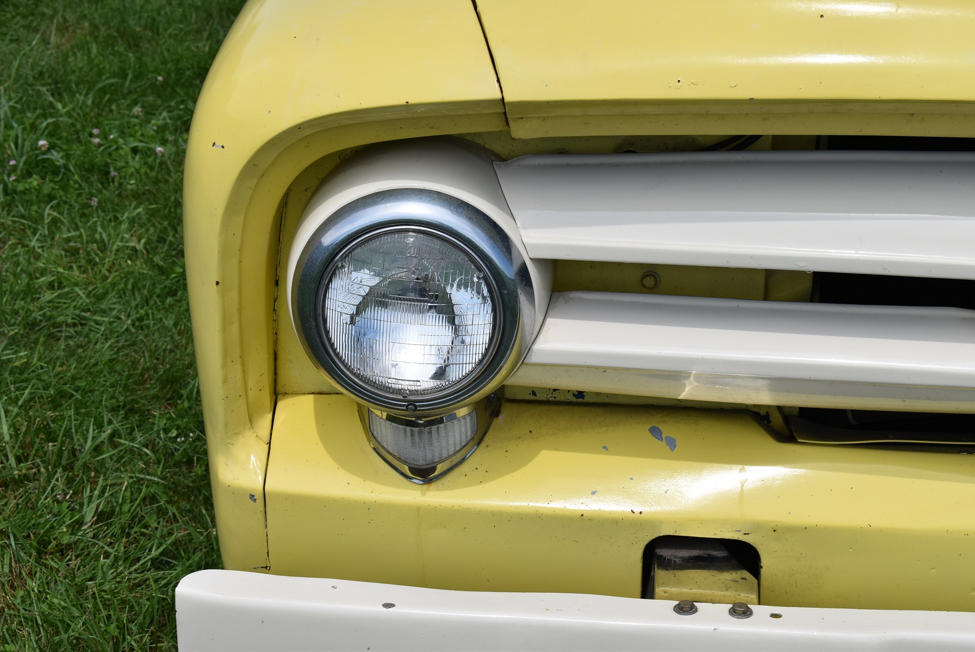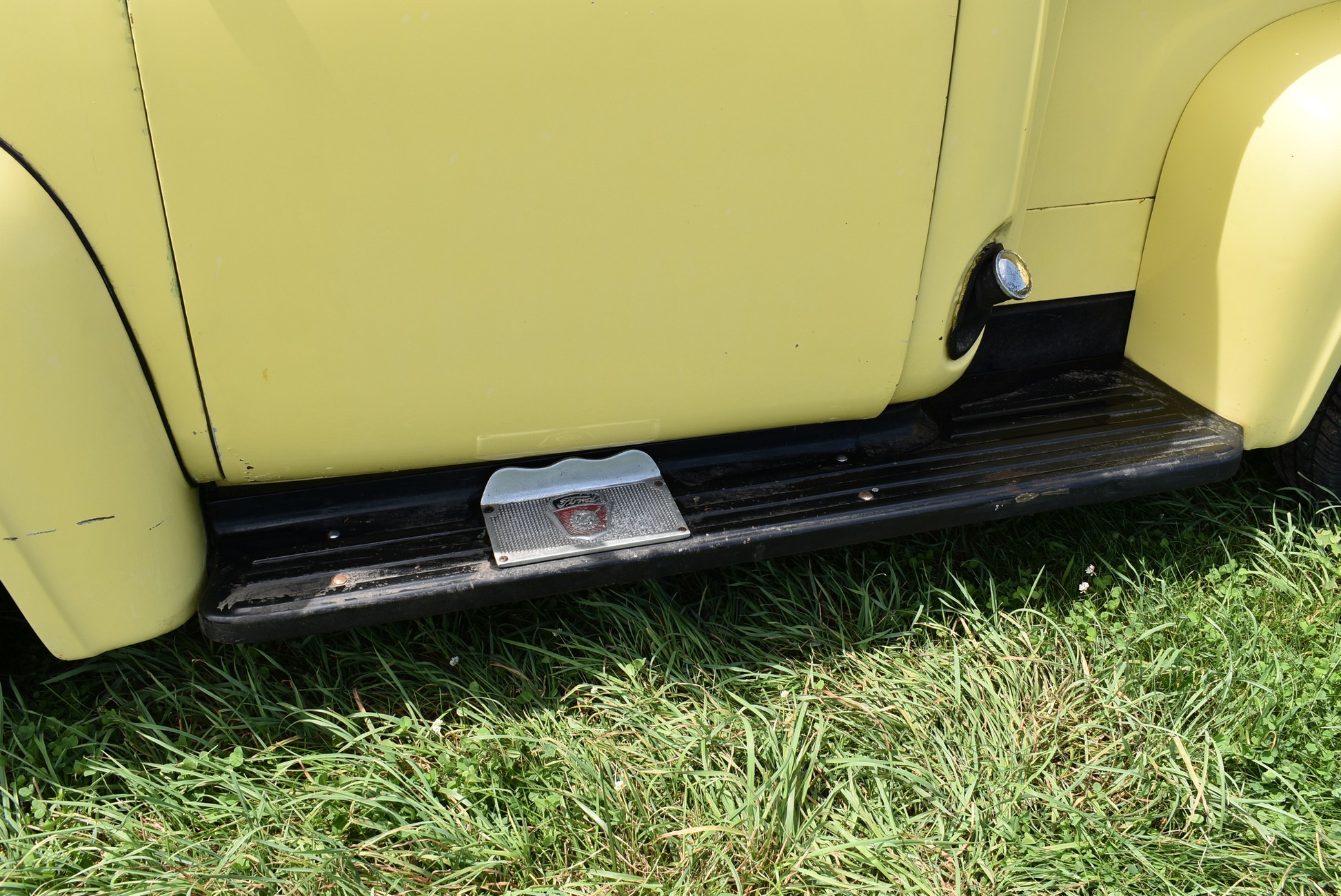 1. 1954 Ford F100 Truck – 351ci. Windsor V8 Engine w/2bbl Carburetor – Mileage Unknown – C4 Auto Transmission – Lokar Shifter – Ford 9” Rear End – Dolphin Digital/Analog Gauges – Dual Exhaust – Fat White Wall Tires – 1955 Taillights – Yellow Exterior – Vin#: F10V4H56048