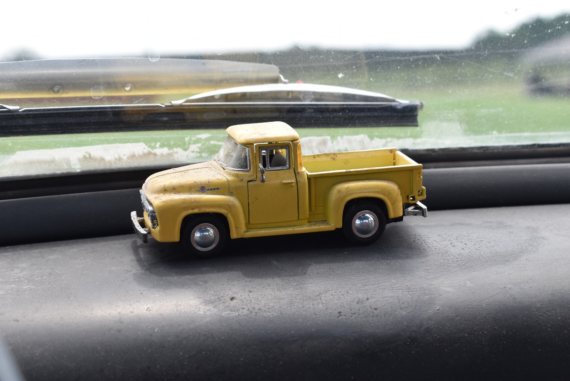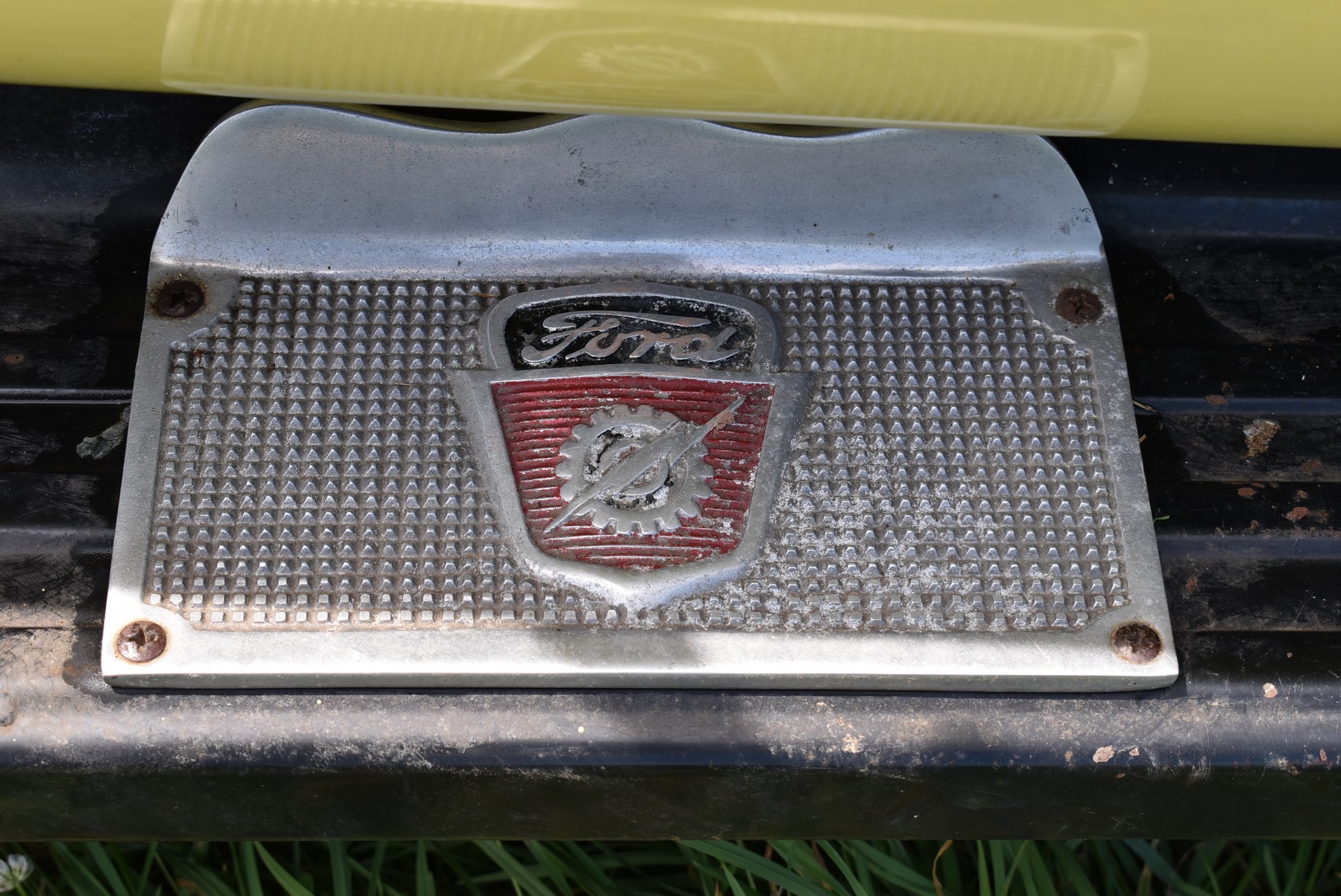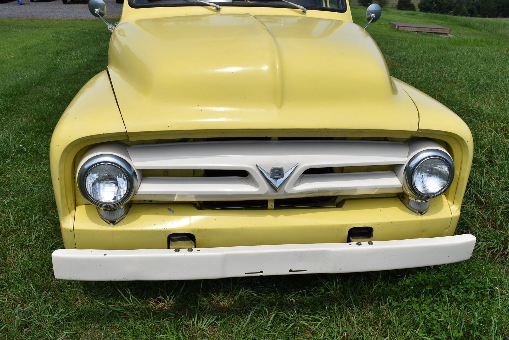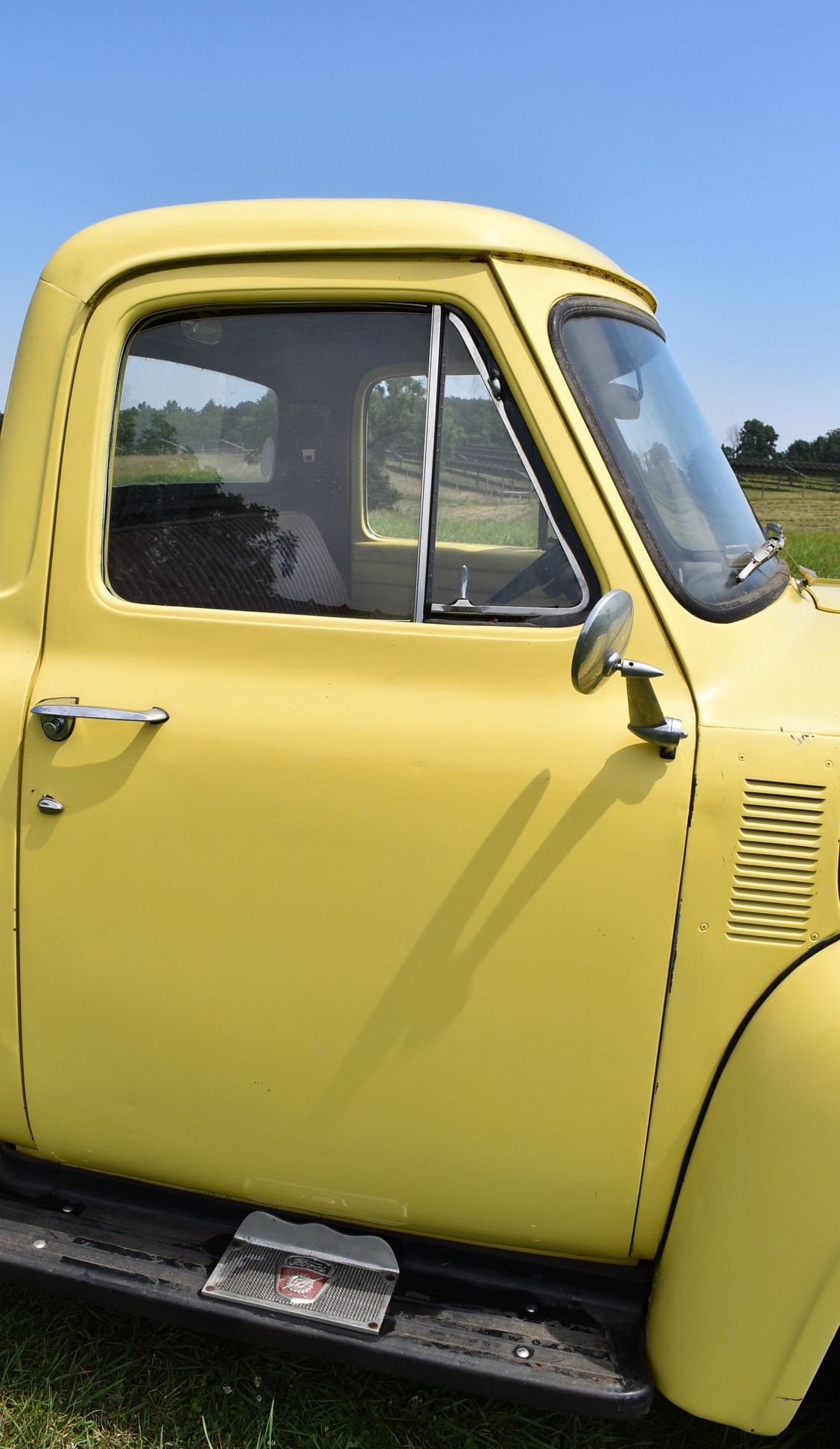 1. 1954 Ford F100 Truck – 351ci. Windsor V8 Engine w/2bbl Carburetor – Mileage Unknown – C4 Auto Transmission – Lokar Shifter – Ford 9” Rear End – Dolphin Digital/Analog Gauges – Dual Exhaust – Fat White Wall Tires – 1955 Taillights – Yellow Exterior – Vin#: F10V4H56048