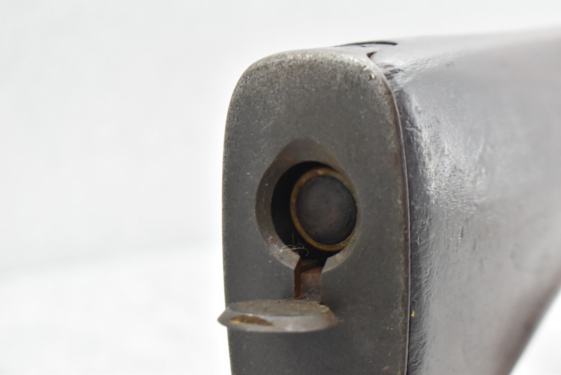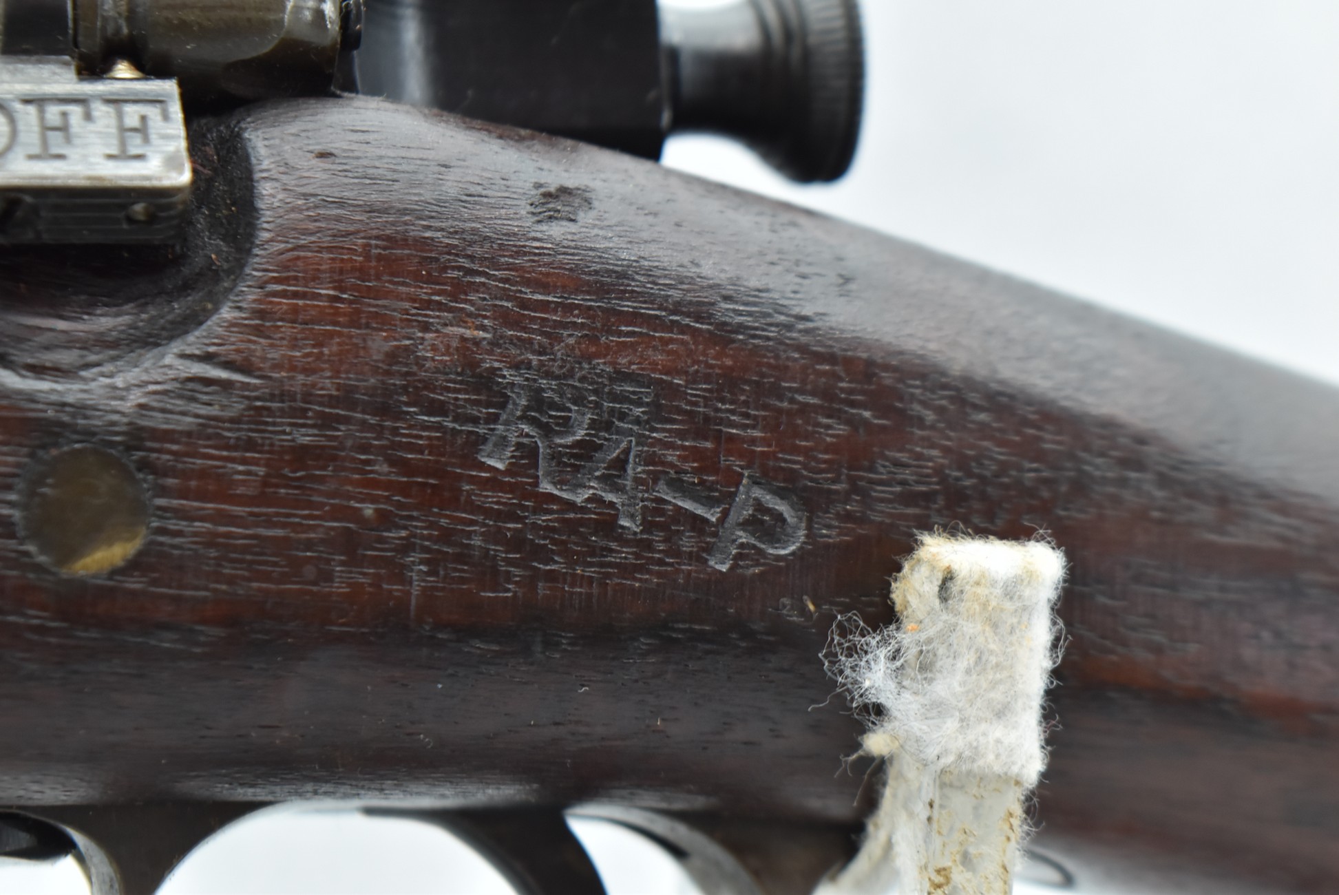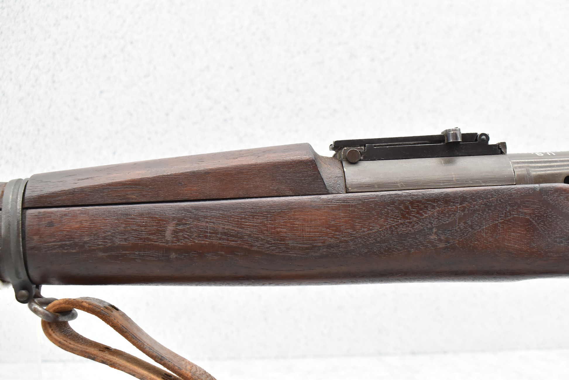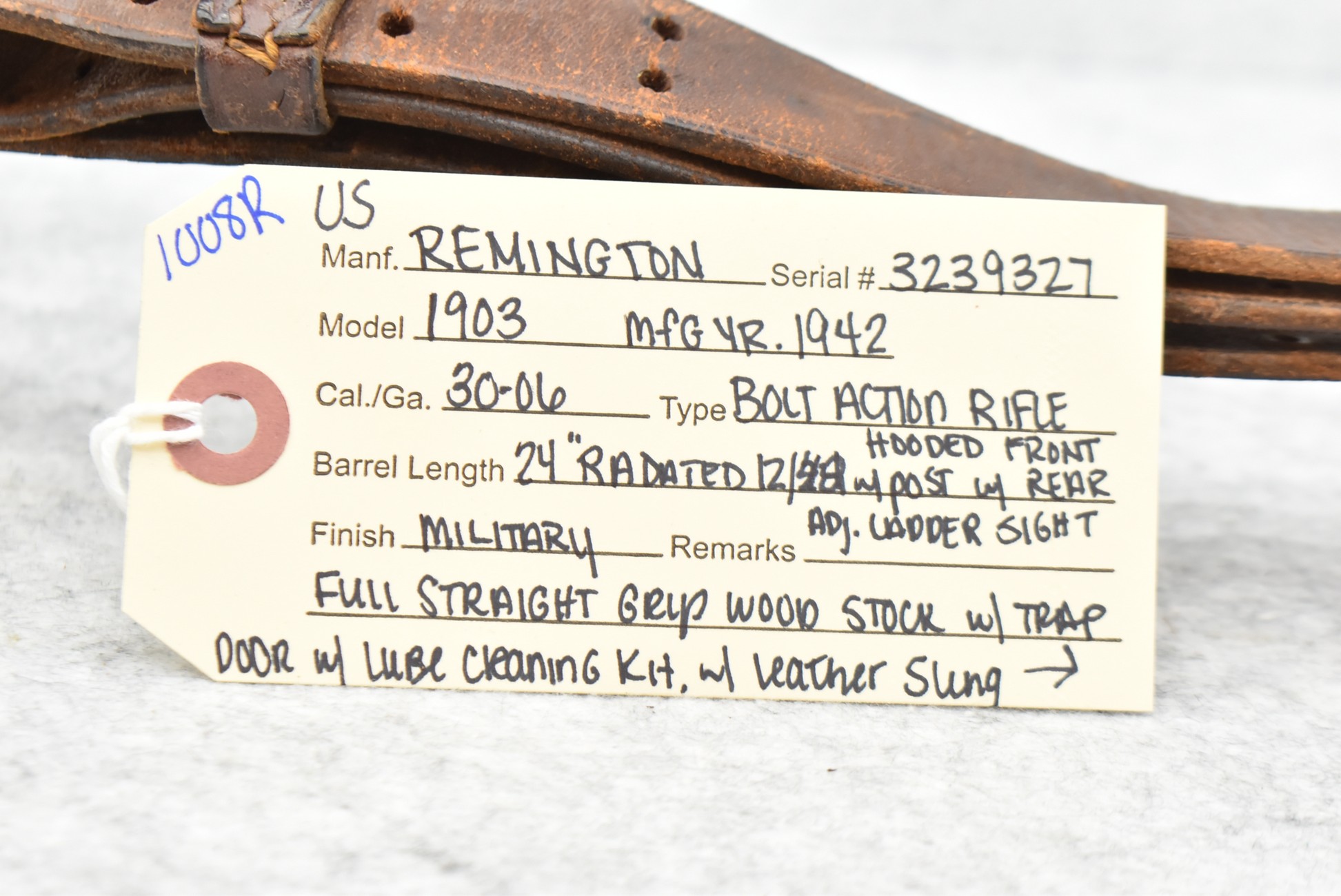 1008R. U.S. Remington – Mod. 1903 – 30-06 Cal. Bolt Action Rifle – w/24” RA 12-42 Dated Barrel w/Hooded Front Post & Rear Adj. Ladder Sights – Military Finish – w/Ful Straight Grip Wood Stock w/Trap Door w/Lube Cleaning Kit in Butt – w/Leather Sling – w/Good RA-P (Raritan Arsenal) Stock Cartouche on Left Side of Stock – Mfg. 1942