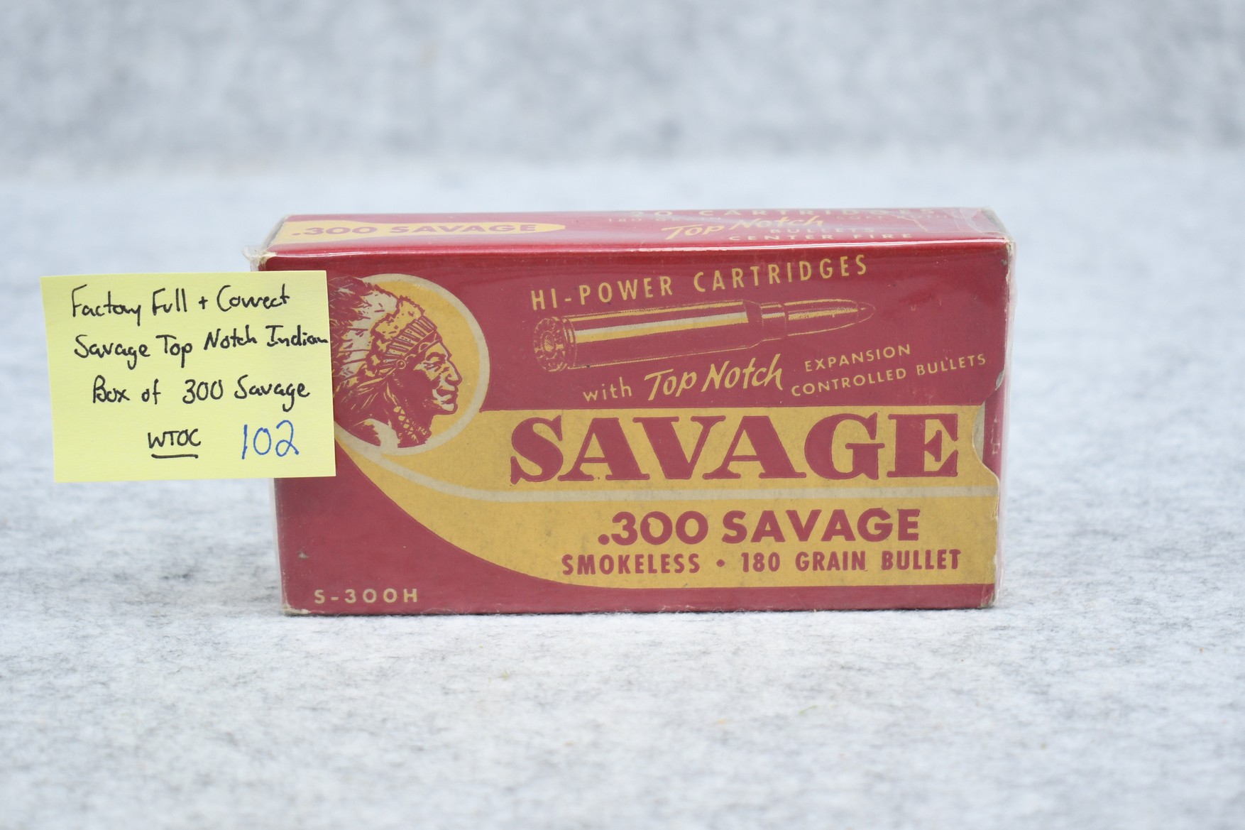 102. Savage – Top Notch Indian Box of 300 Savage – FF & Correct – WTOC