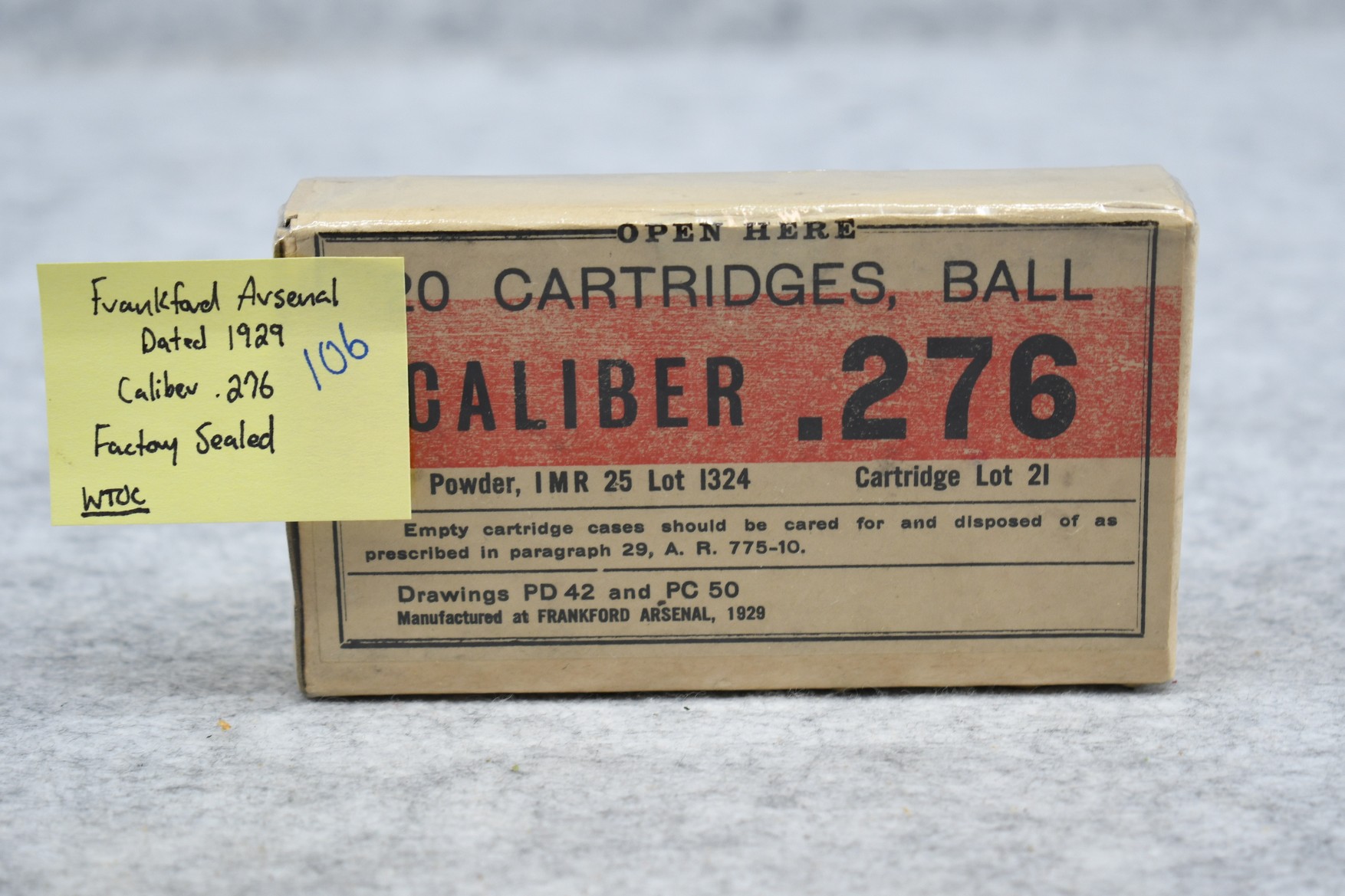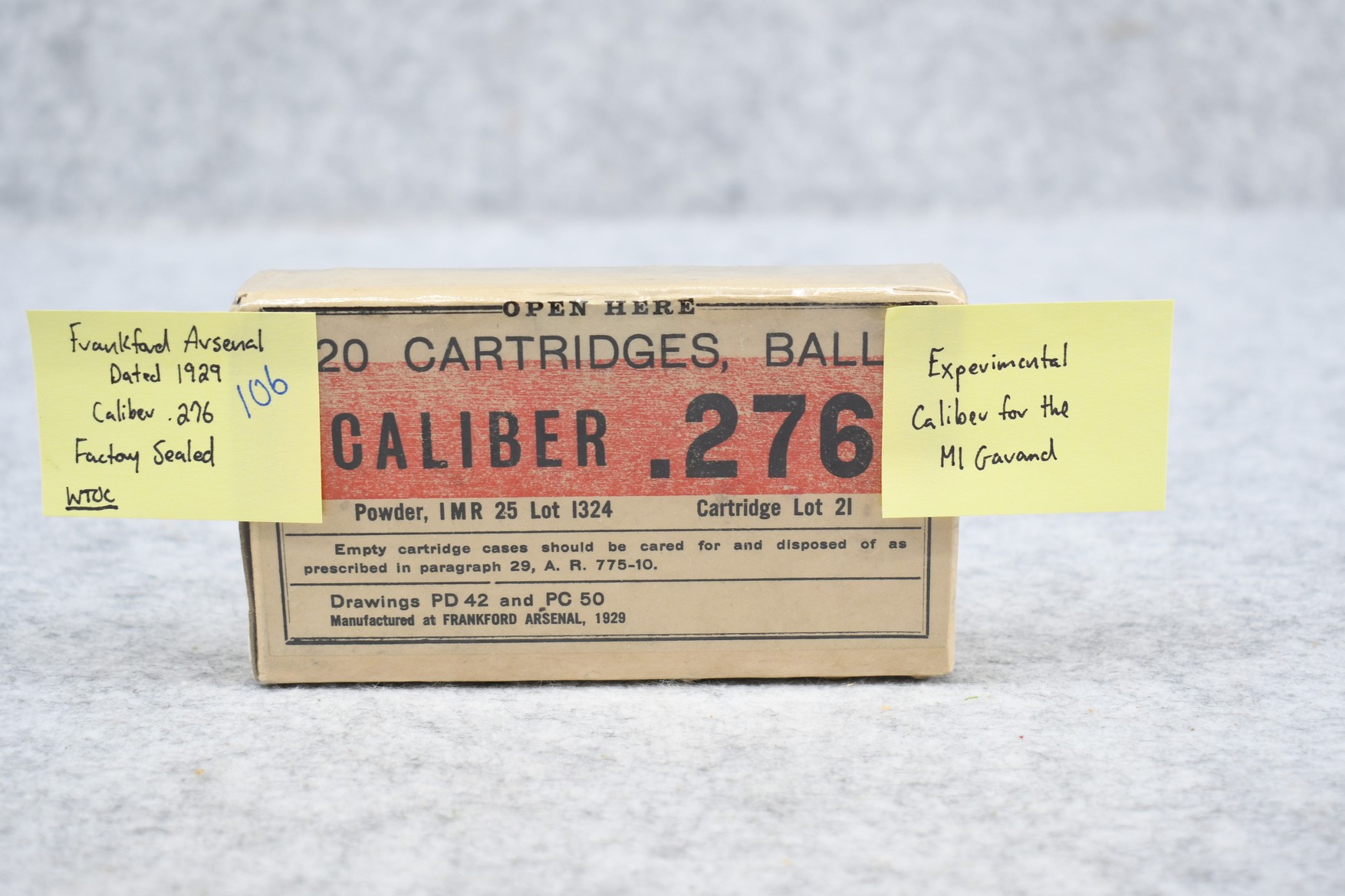 106. Frankford Arsenal – Dated 1929 Caliber .276 (Experimental Caliber for the M1 Garand) – Factory Sealed – WTOC
