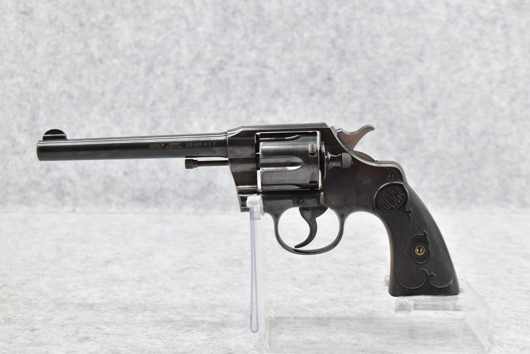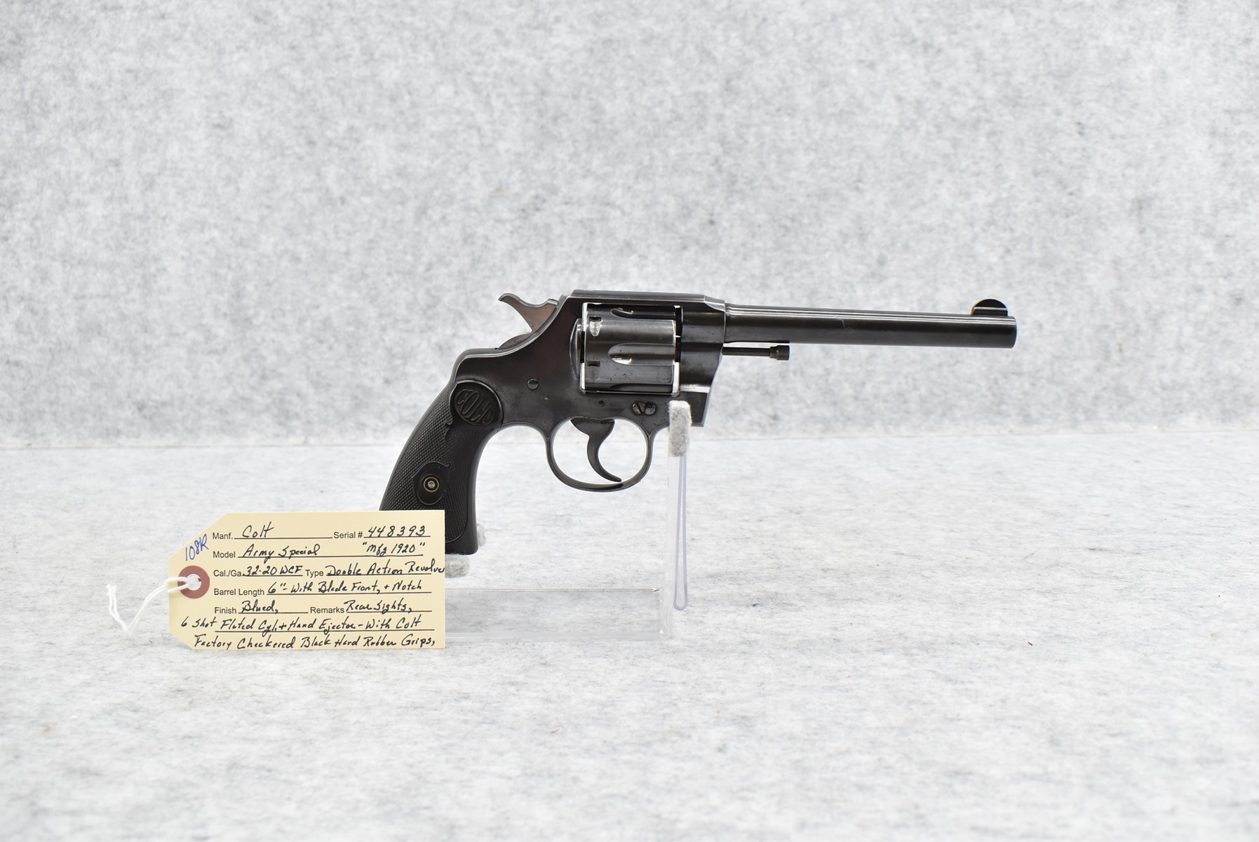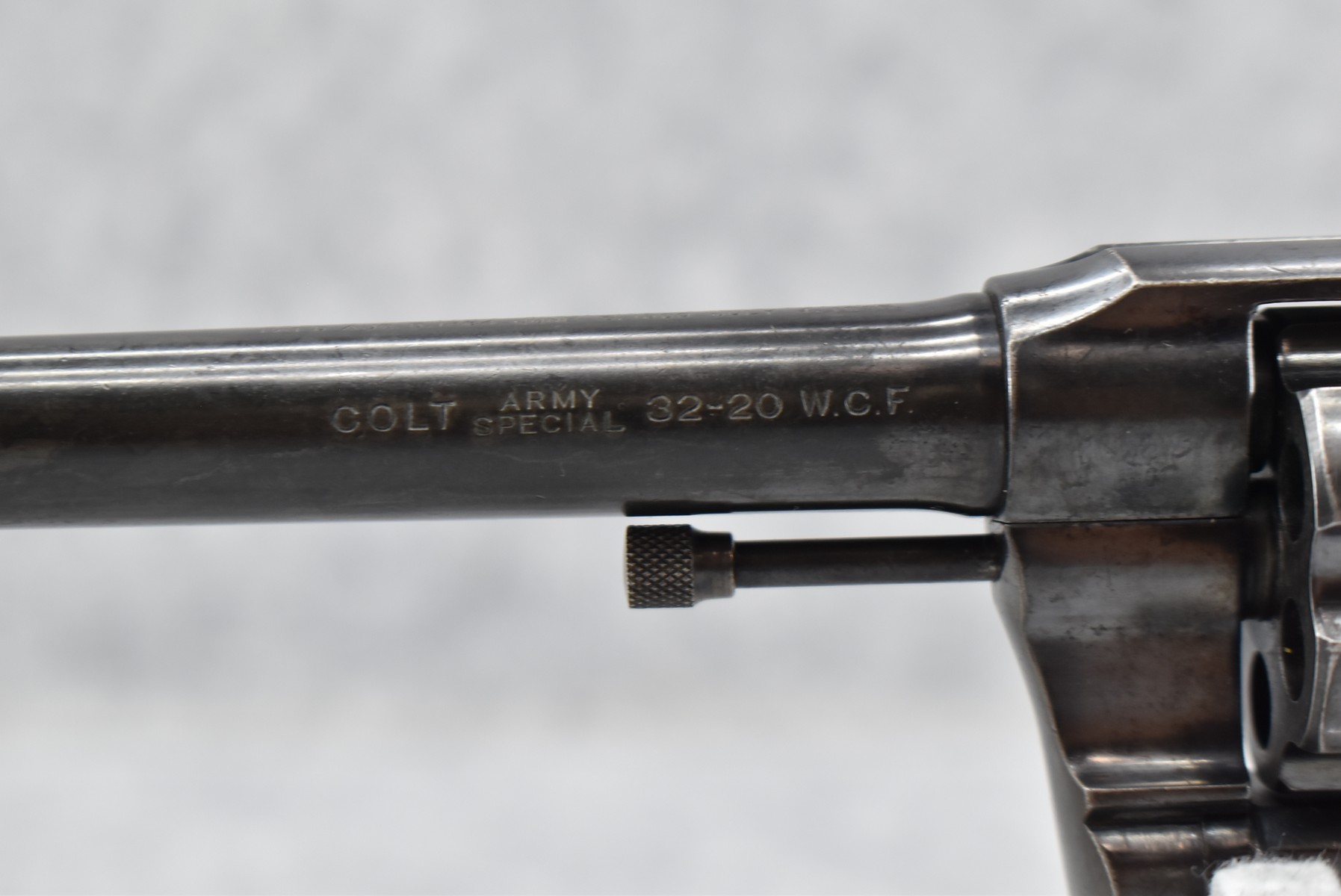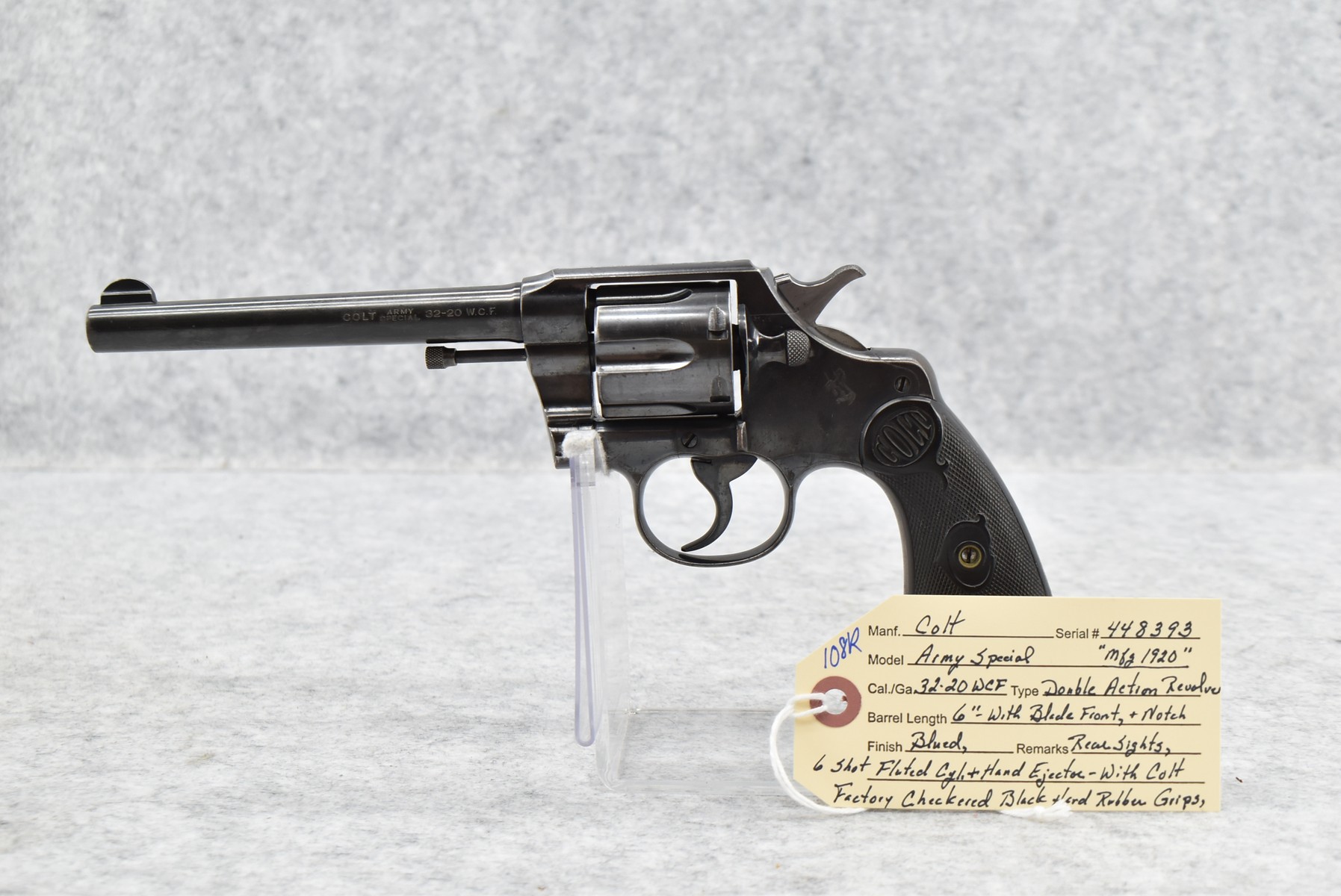 108R. Colt – Mod. Army Special – 32-20 WCF Cal. Double Action Revolver – w/6” Barrel w/Blade Front & Notch Rear Sights – Blued Finish – w/Colt Factory Checkered Black Hard Rubber Grips – w/6-Shot Fluted Cylinder – Mfg. 1920