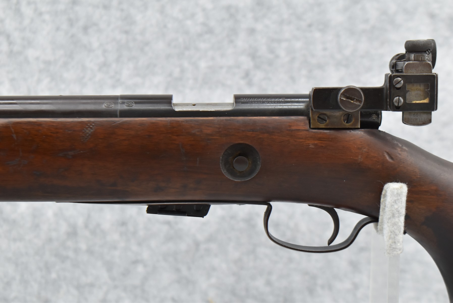 109R. Winchester – Mod. 75 Target – 22LR Cal. Bolt Action Rifle – w/28” Heavy Barrel w/Front Adj. Globe Sight & Rear Adj. Redfield Rear Receiver Peep Sight – Blued/Gray Finish – w/Smooth Pistol Grip Wood Stock w/Factory Metal Butt Plate – w/Factory 5Rd Magazine – Mfg. 1950