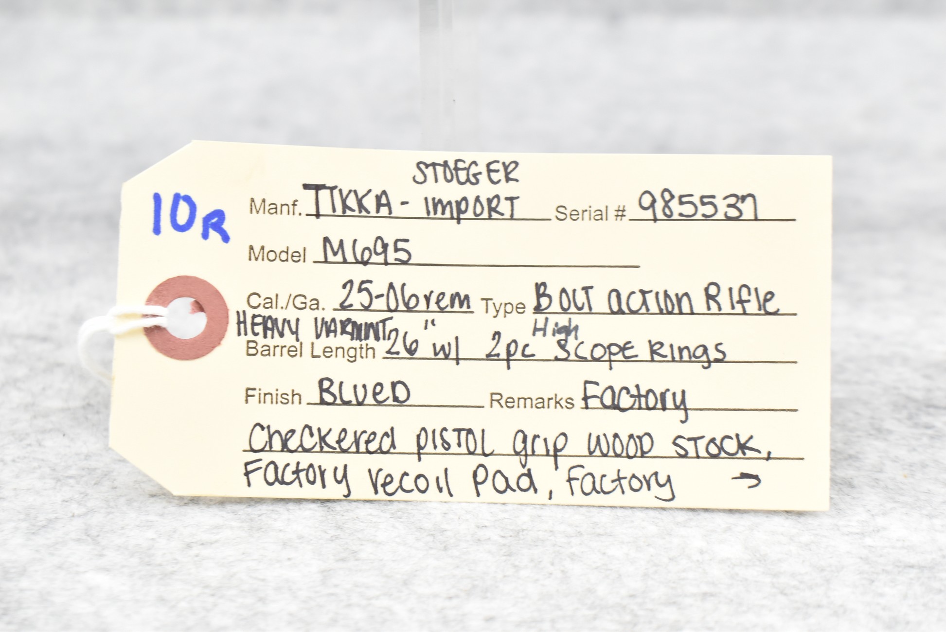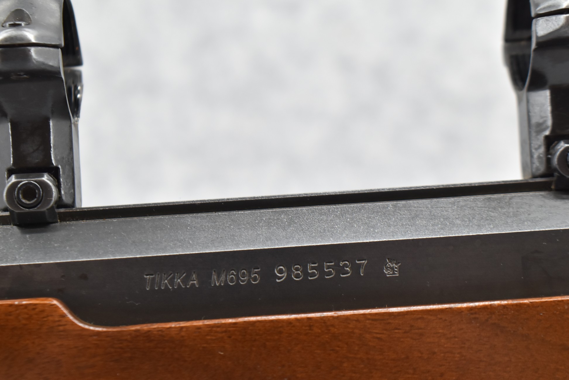 10R. Tikka – Mod. M695 – 25-06 Rem. Cal. Bolt Action Rifle – w/26” Heavy Varmint Barrel – Blued Finish – w/Factory Checkered Pistol Grip Wood Stock w/Factory Recoil Pad – w/Factory Detachable Magazine – w/2pc. High Scope Rings
