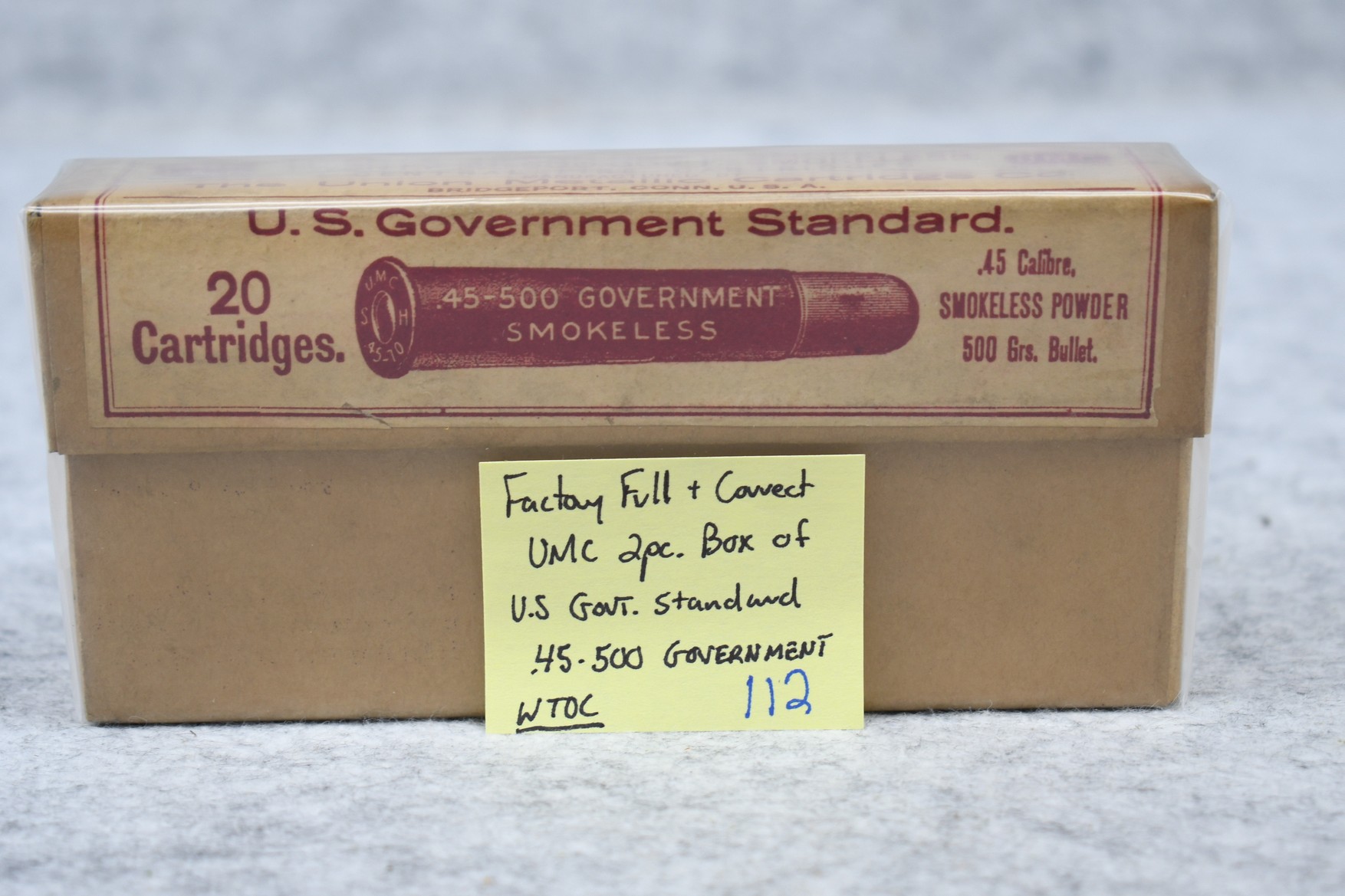 112. UMC – 2pc. Box of U.S. Govt. Standard .45-500 Government – FF & Correct – WTOC