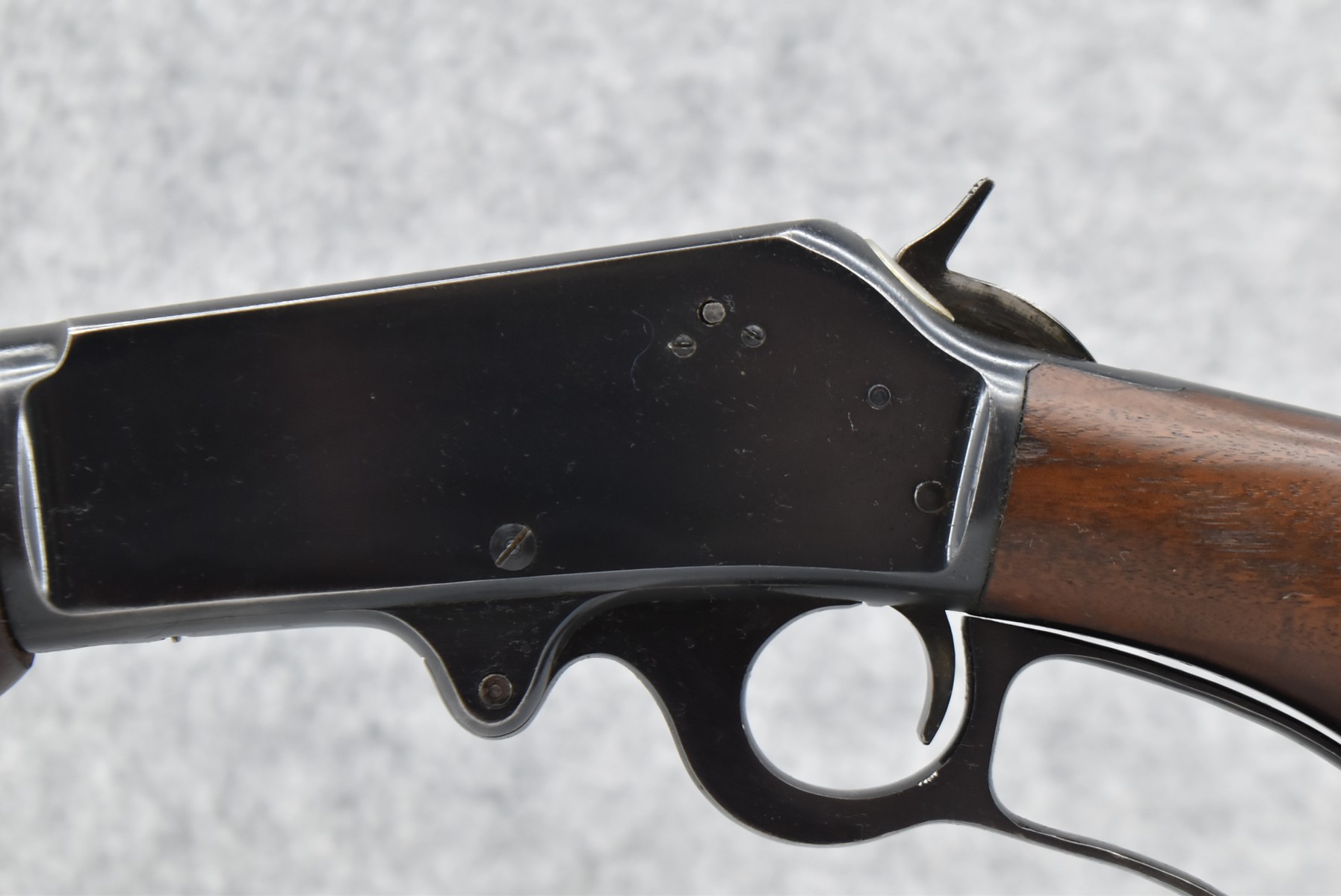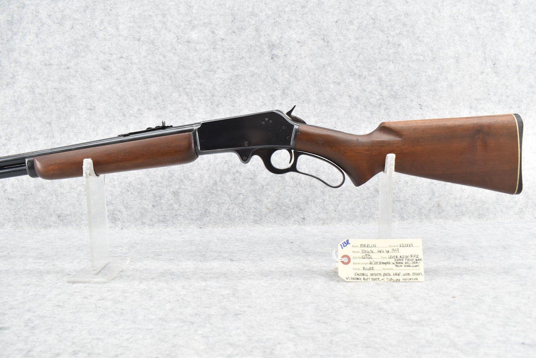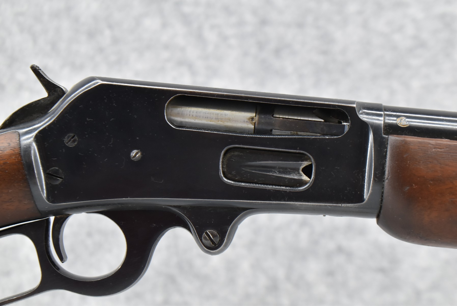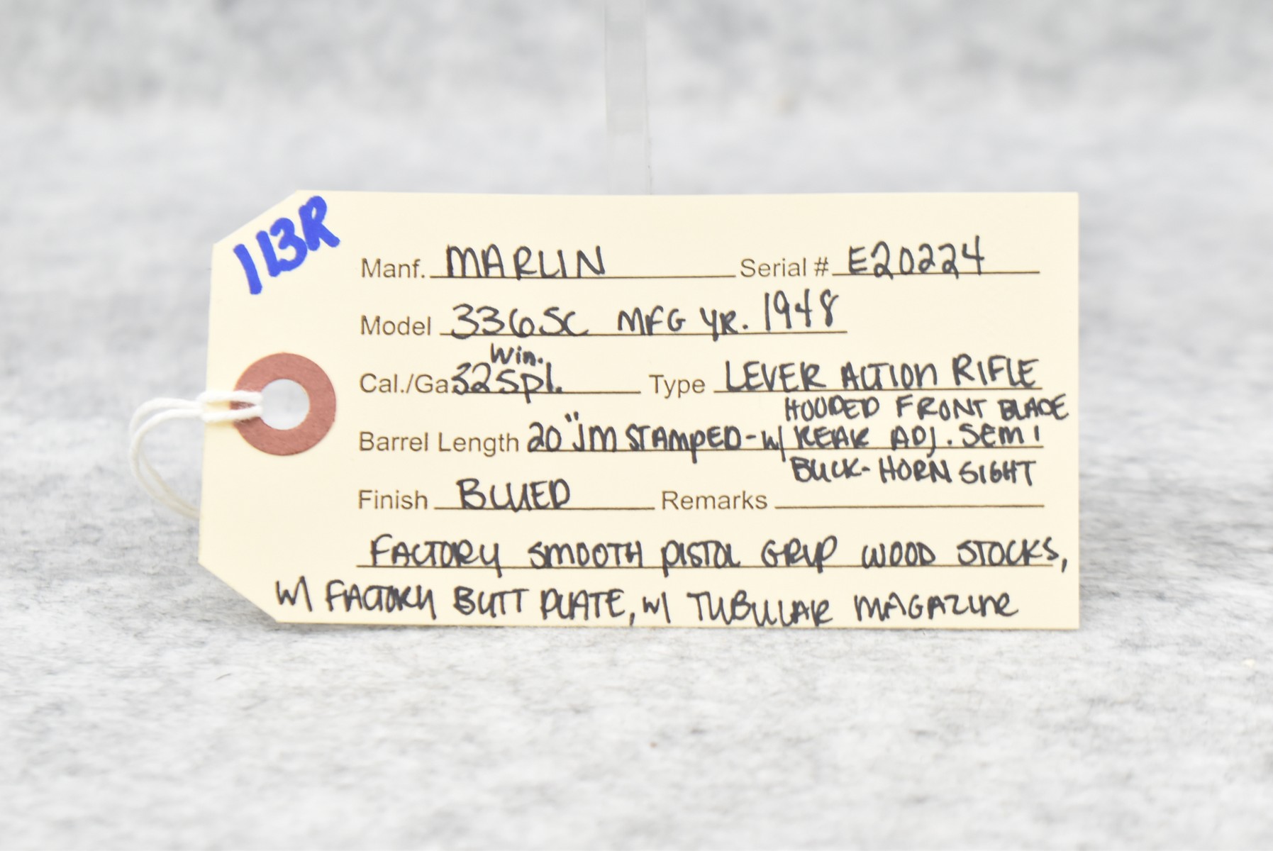 113R. Marlin – Mod. 336 SC – 32 Win. Spl. Cal. Lever Action Rifle – w/20” JM Stamped Barrel w/Hooded Front Blade & Rear Adj. Semi-Buckhorn Sights w/Tubular Magazine – Blued Finish – w/Factory Smooth Pistol Grip Wood Stocks w/Factory Butt Plate – Mfg. 1948
