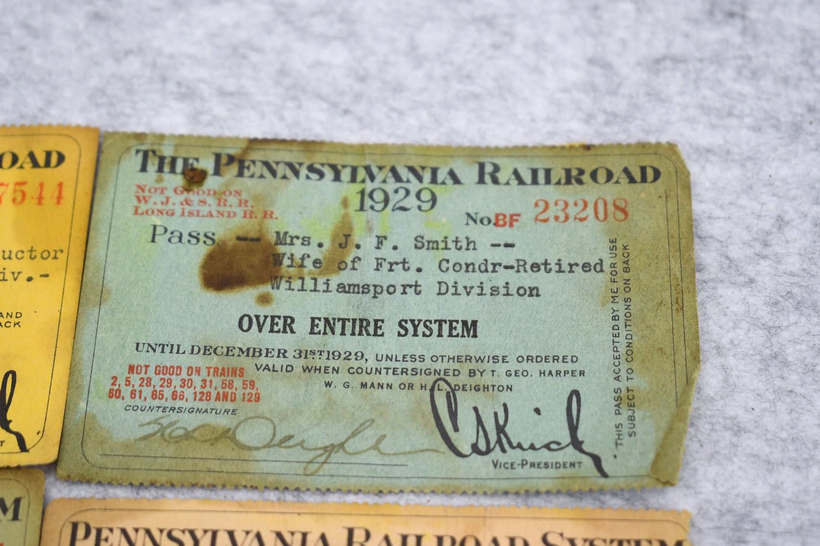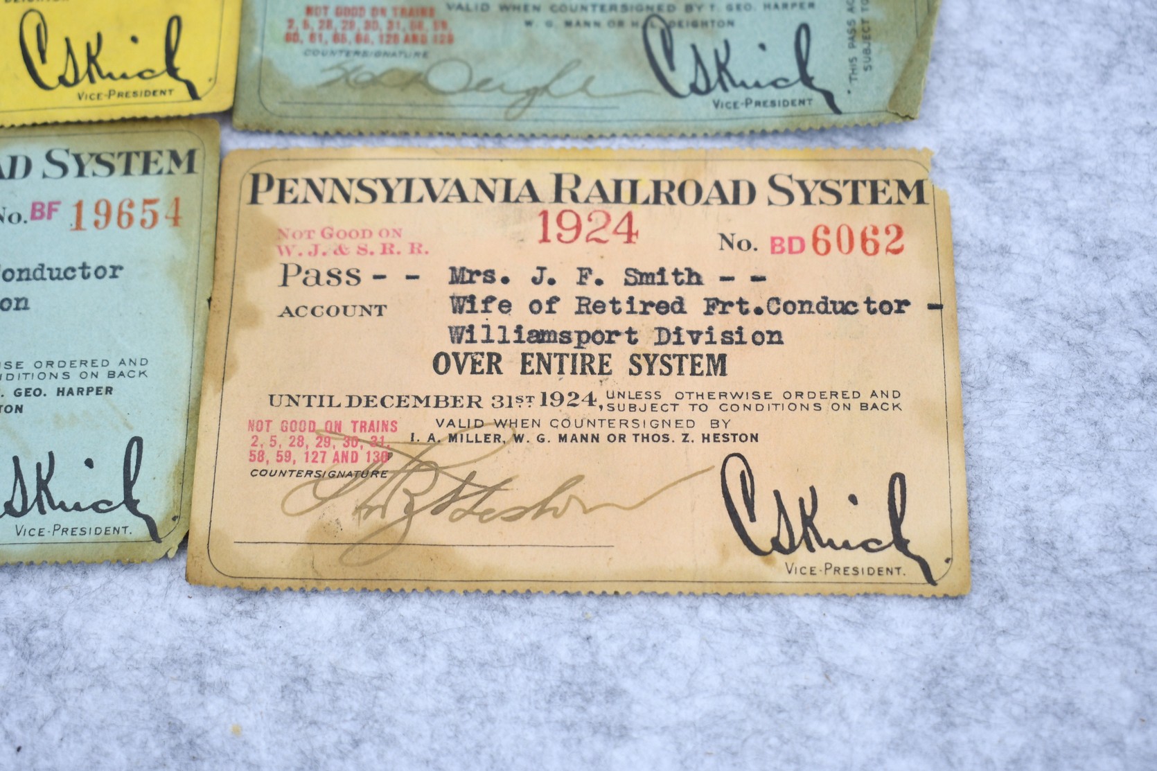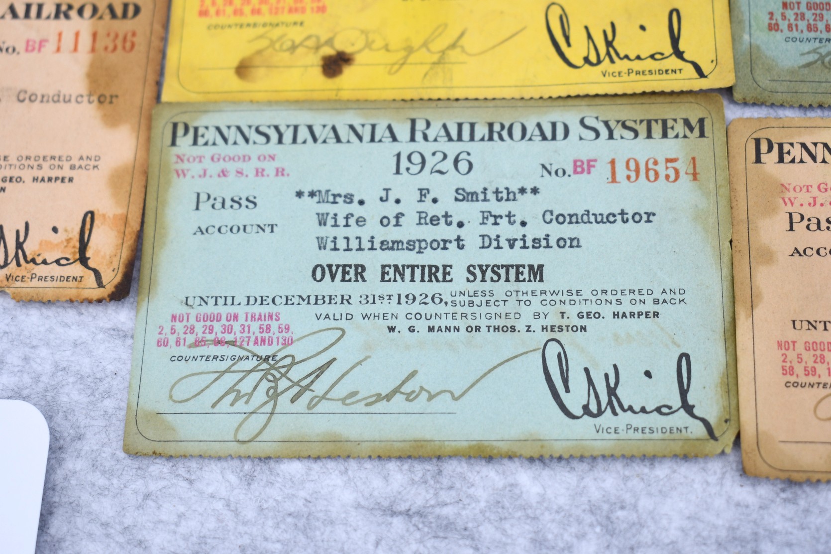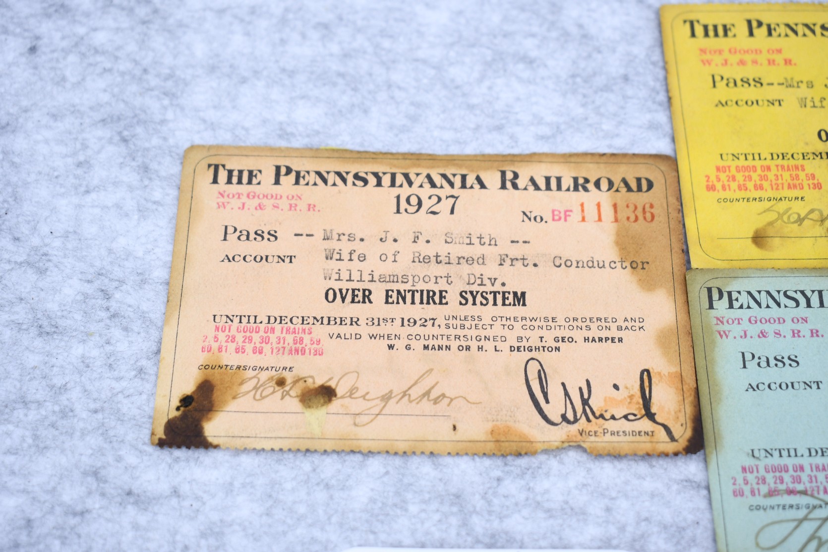 118. Lot of 5 P.R.R. Railroad Tickets Including: 1924, 1926, 1927, 1928, and 1929 – Tickets are Good for the Entire Railroad System